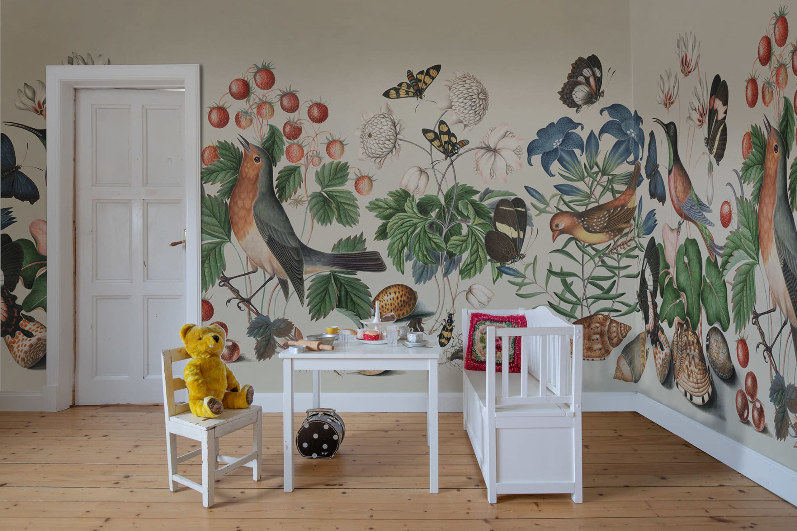 Tapetul Flora and Fauna este pur și simplu adorabil cu modelul său la scară largă cu păsări și fructe de pădure, oferind o impresie vioaie și captivantă. Varianta de culoare Color vine cu nuanțe minunate de verde, roșu, maro și albastru pe un fundal bej.