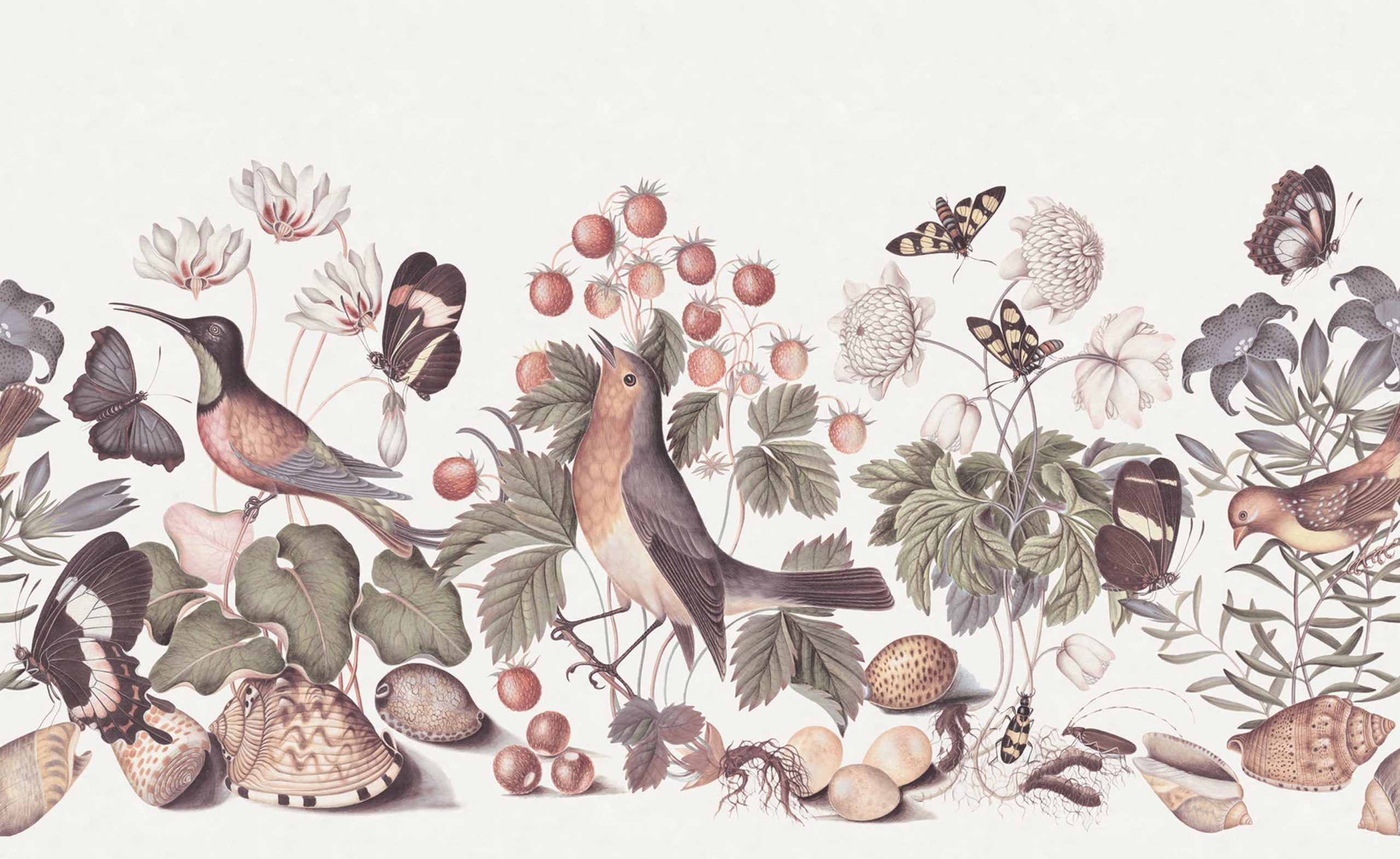 Tapetul Flora and Fauna este pur și simplu adorabil cu modelul său la scară largă cu păsări și fructe de pădure, oferind o impresie vioaie și captivantă. Varianta de culoare Dust vine cu nuanțe delicate de verde, roșu, maro și albastru pe un fond bej deschis.