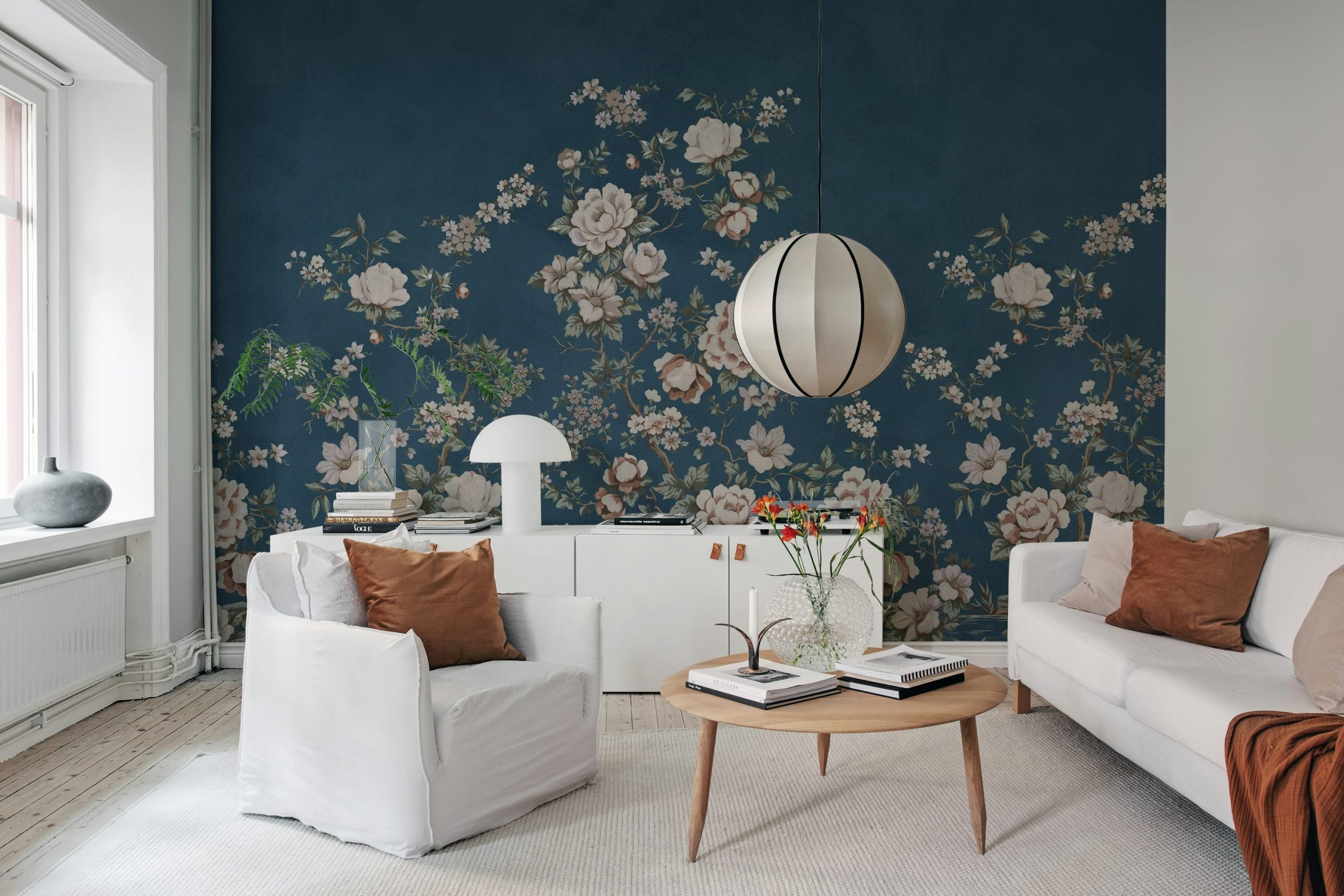 Floral Chinoiserie, Dark Blue, Rebel Walls