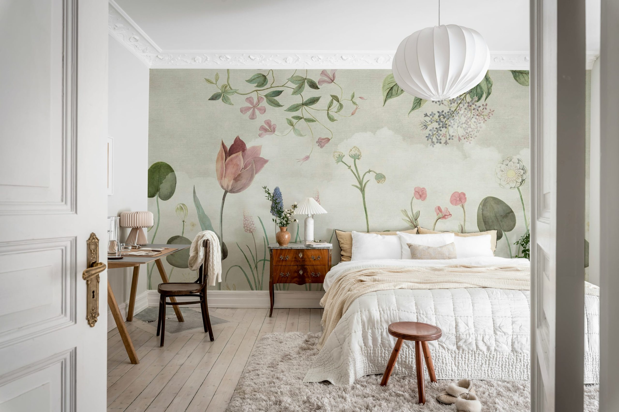 Acest tapet floral delicat aduce un aer boem și relaxant în orice cameră. Perfect pentru dormitoare, livinguri sau chiar birouri, transformând spațiul într-o oază de liniște.