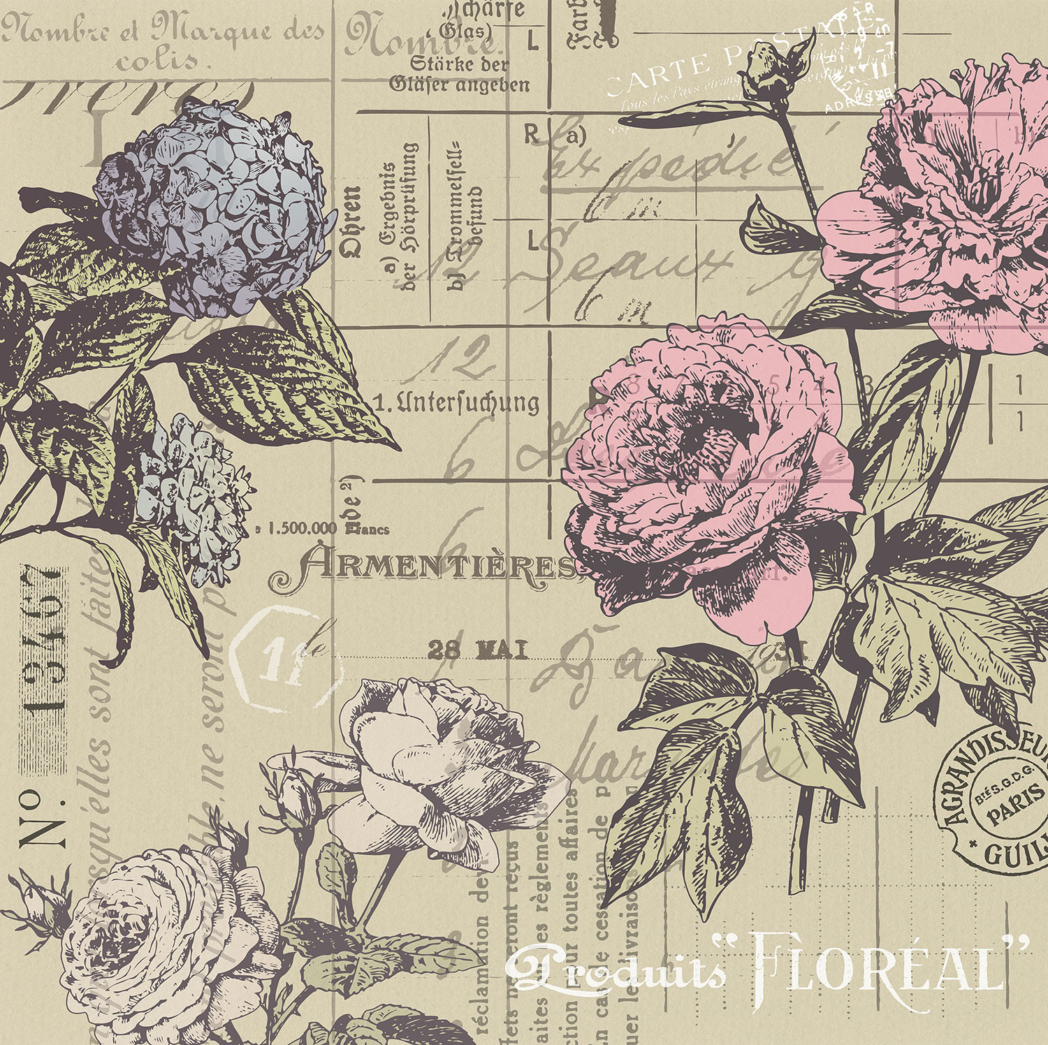 Trandafiri și scrisori. Ce poate fi mai romantic? Schițat parcă în creion, fototapetul Floreal va aduce o atingere vintage, cu un aer boem, oricărei încăperi. În nuanțe de bej, roz, bleu.
