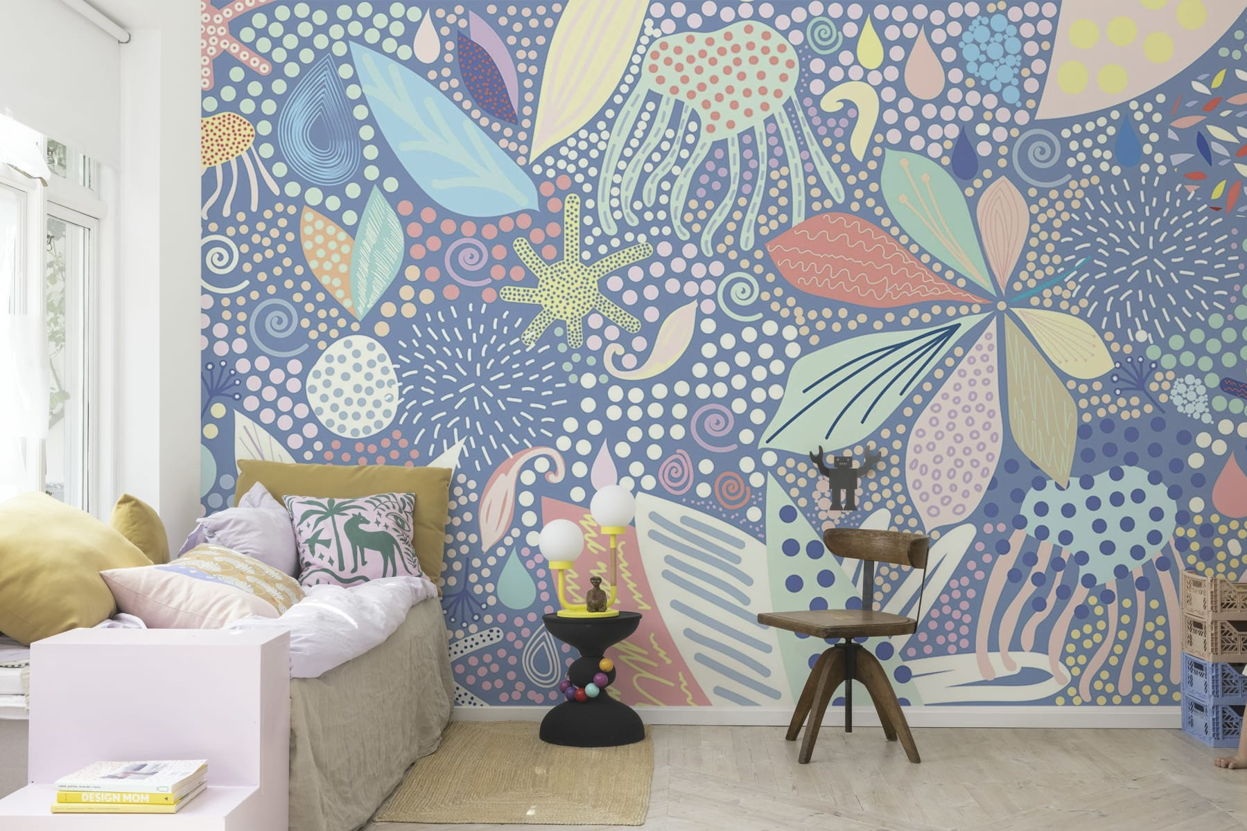 Descoperă o tapiserie de eleganță botanică cu Flower Art, Blue, un tapet care celebrează arta naturii printr-un model viu de flori și faună stilizate. Pe un fond de albastru moale, acest design înflorește cu o gamă de tonuri pastelate, aducând o notă proaspătă și modernă motivelor florale. Puncte delicate și forme organice se amestecă pentru a forma un peisaj luxuriant și visător, ideal pentru spații care aspiră să inspire și să liniștească. Acest design nu doar decorează o cameră; îl transformă într-un sanctuar al creativității și liniștii, unde pereții înfloresc cu imaginație.