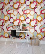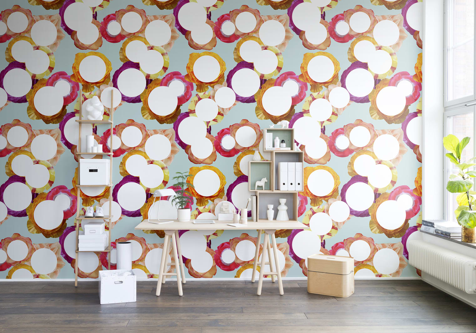 Ne place simplicitatea unui tipar grafic dar și bucuria care vine odată cu un model floral, dar nu ne place să ne limităm la a alege una în detrimentul celeilalte. Pentru acest design am ascuns inima florilor colorate în spatele unui cerc simplu pentru a crea un model mai mult decât surprinzător. Cu ajutorul echipe de design poți umple golurile din fototapet cu pozele tale personale.
