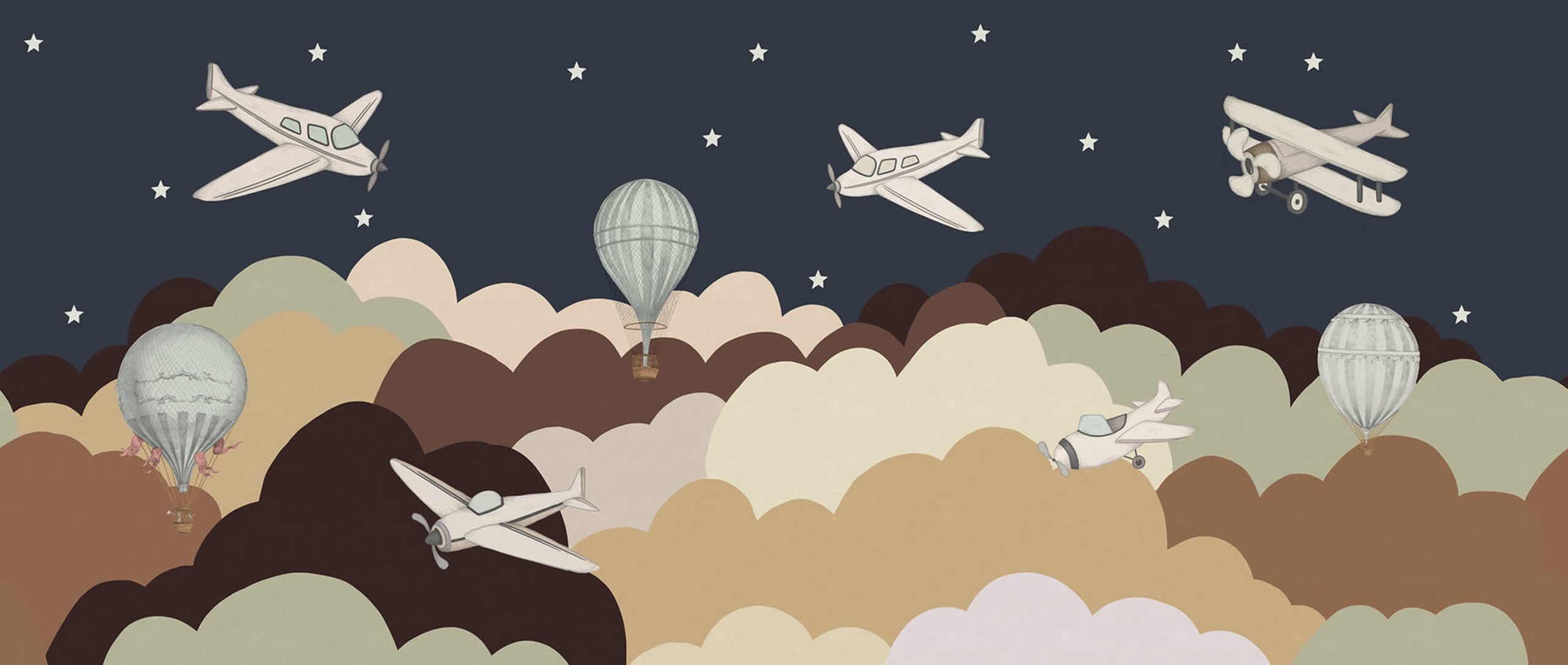 Transformă-ți pereții într-o călătorie plină de farmec cu tapetul nostru Fly Away, Brown. Uimește-te observând cum avioanele vintage se plimbă ușor peste un cer maro-ciocolatiu, presărat cu nori moi și stele strălucitoare. Acest design captivant aduce romantismul aventurii în orice cameră, invitând imaginația să zboare la înălțimi noi. Ideal pentru visători și călători, Fly Away, Brown oferă o evadare liniștită printre nori. Potrivit pentru un colț de lectură confortabil sau camera unui copil, acest tapet este un bilet către visare. Nuanțele subtile îl fac versatil pentru diverse stiluri de decor, în timp ce modelul său fermecător promite să aprindă povești și să stârnească conversații.