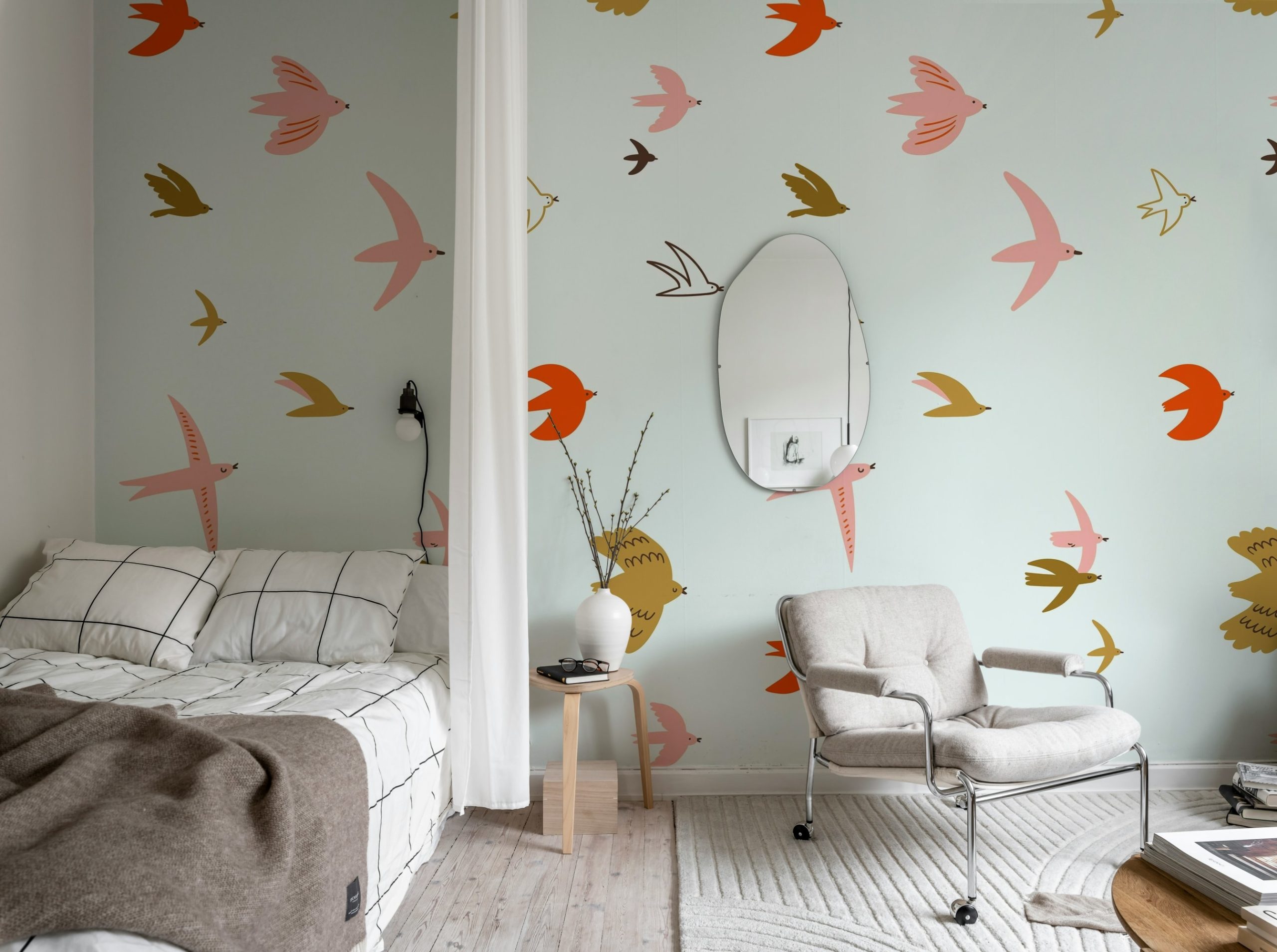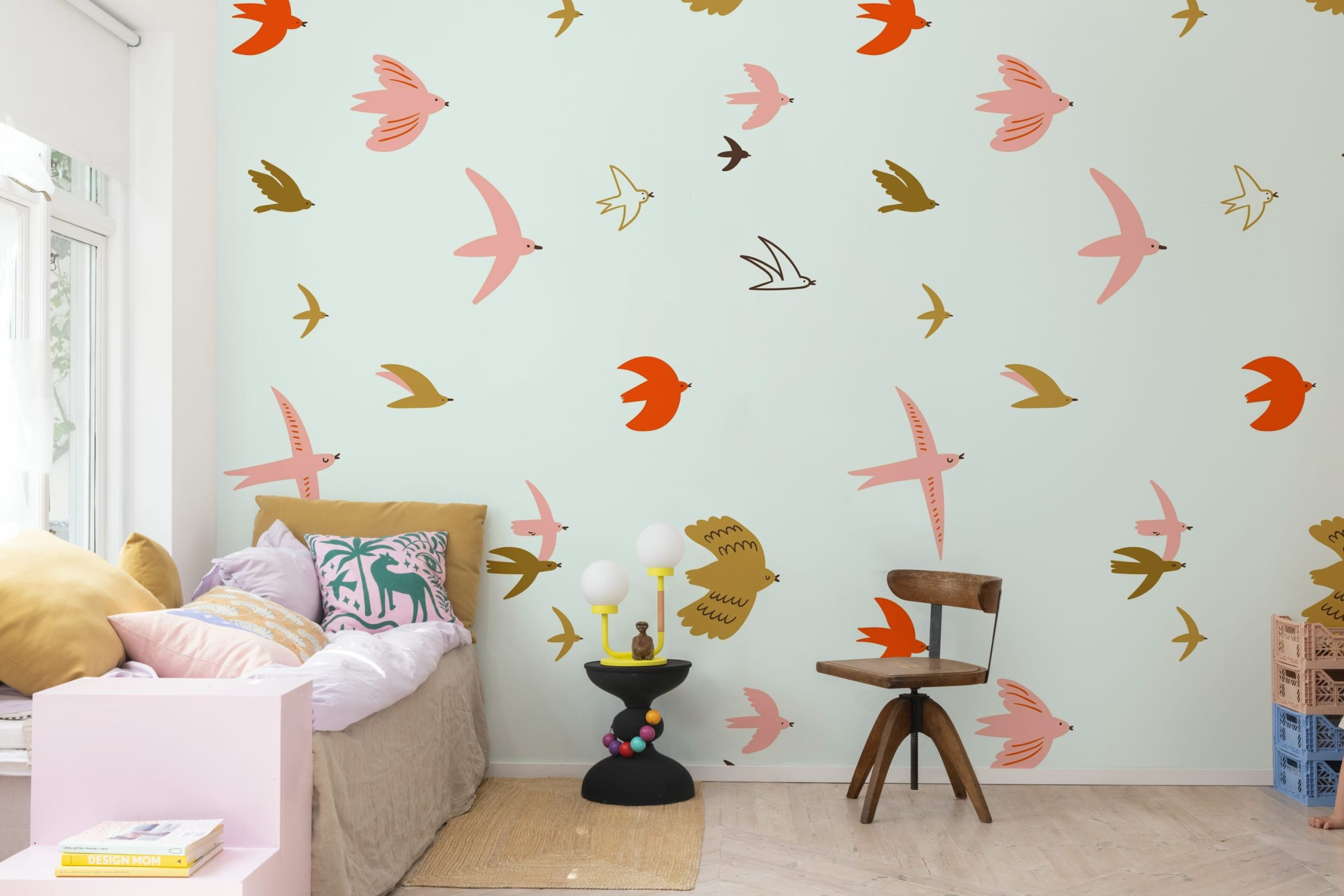Adaugă un strop de libertate și bucurie camerei cu acest fototapet încântător. Designul prezintă păsări delicate în zbor, pe un fundal albastru deschis, creând o atmosferă relaxantă și primitoare. Ideal pentru orice spațiu!