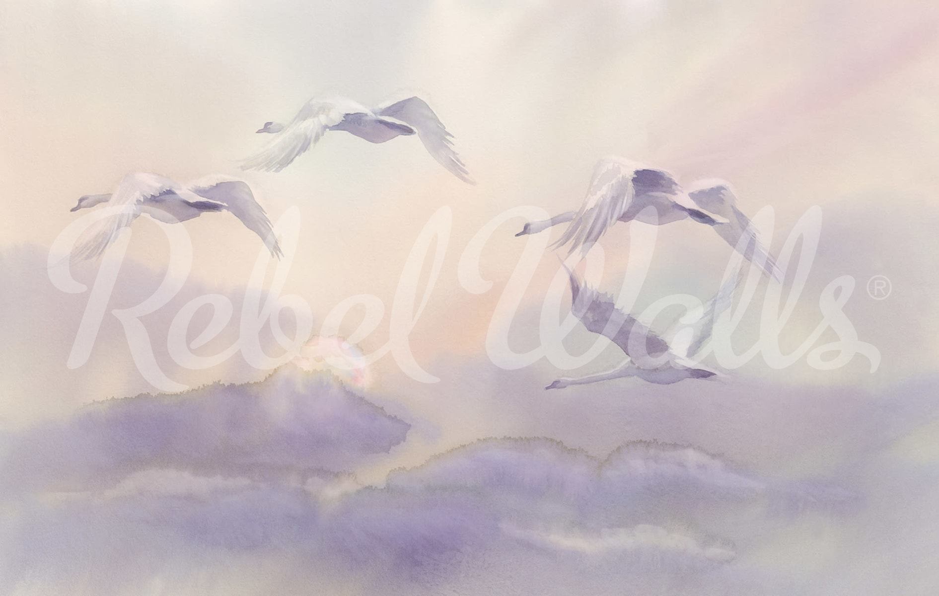 Flying Swans, Pastel, Rebel Walls