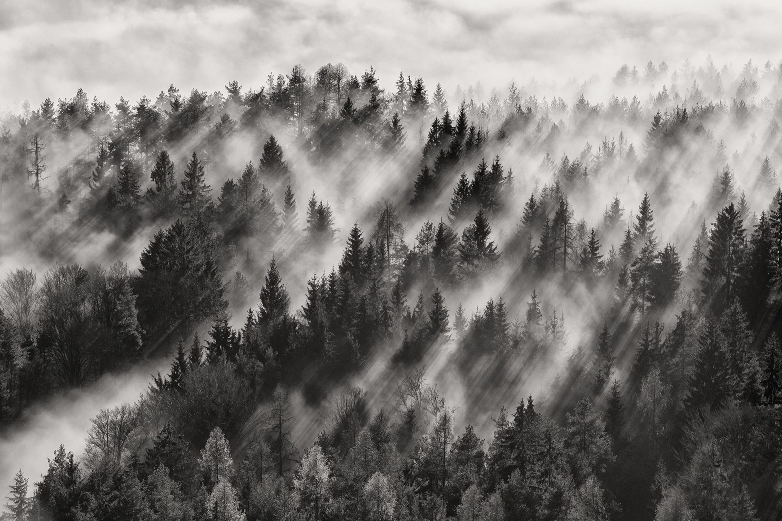 Ceața coboară peste pădure.