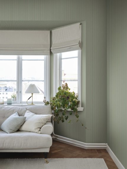 Acest tapet clasic, cu dungi late, se potrivește perfect într-o încăpere modernă, precum și într-o amenajare mai tradițională. Tapet >