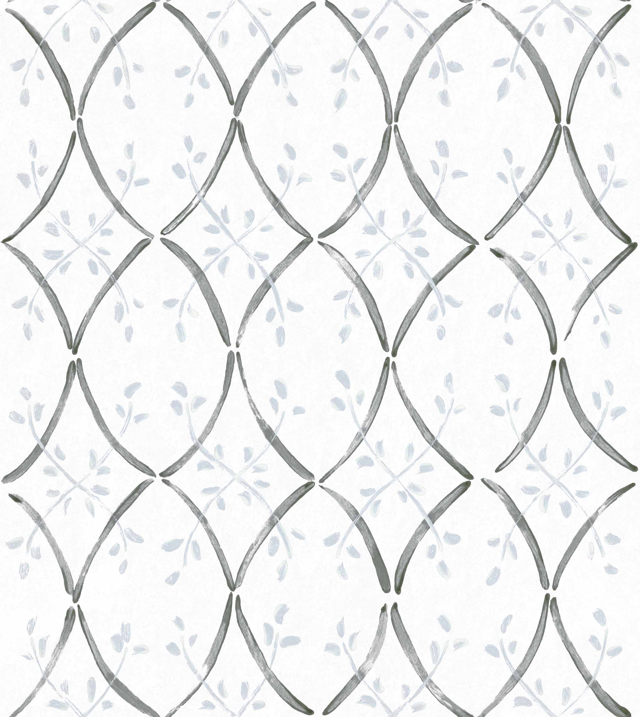 Forja, Nube, din colecția Palacio de Cristal, este un tapet de inspirație vegetală, în tonuri de alb/gri. Ovalul din fier forjat susține iasomia italiană curajoasă.