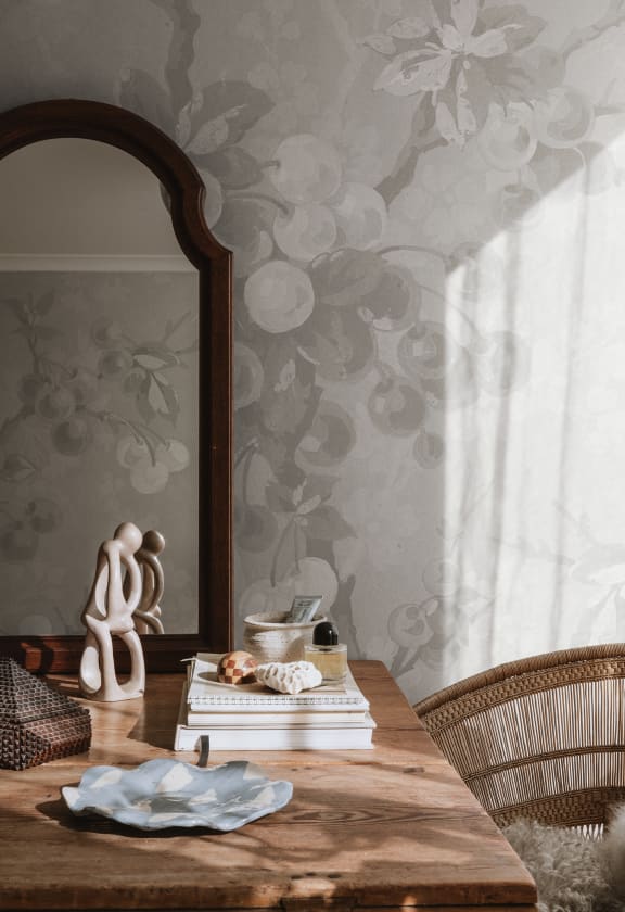O lume botanică de basm prinde viață în acest tapet plin cu cireșe mărite care îți stârnesc fantezia și fac să zâmbească întreaga cameră.