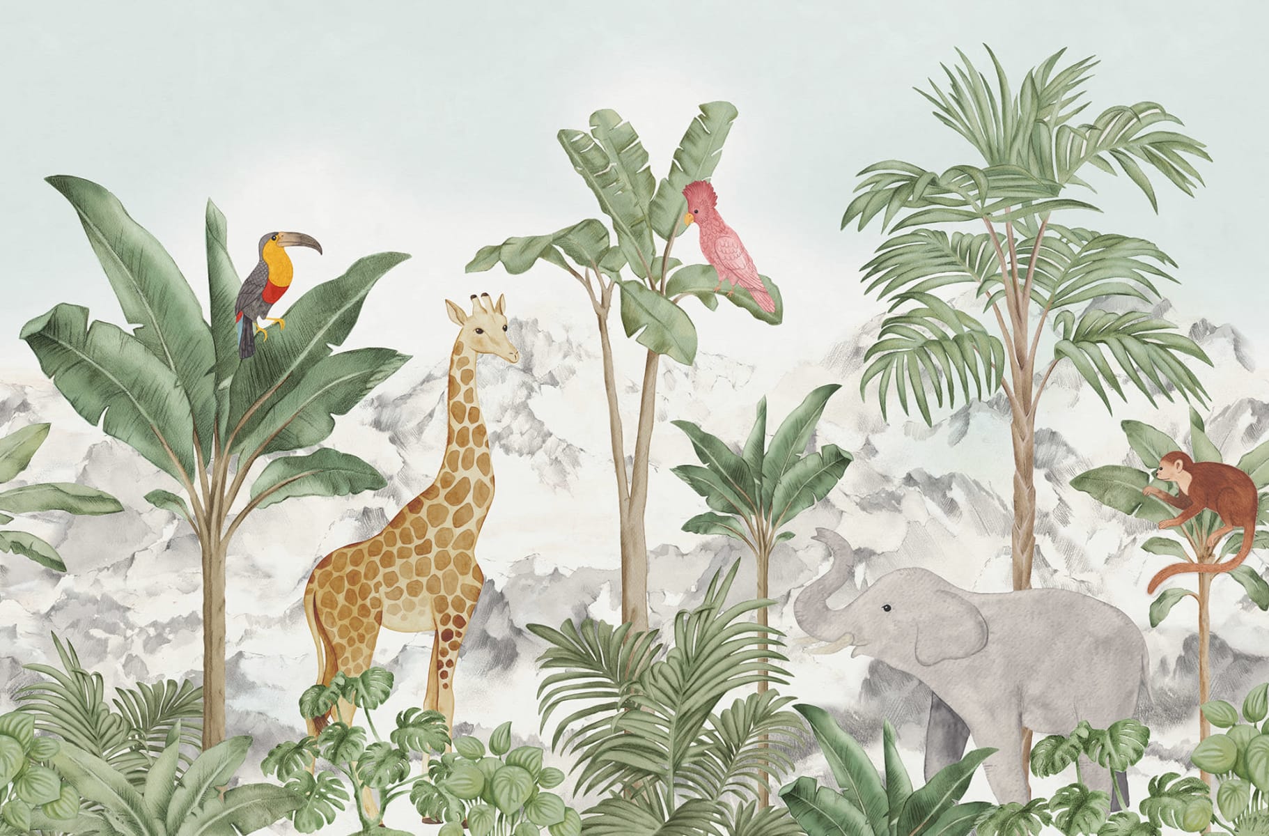 Scufundă-te în verdeața luxuriantă a tapetului nostru Friends of the Jungle, Green. Acest design fermecător este o sărbătoare a diversității naturii, prezentând girafe prietenoase, tigri ascunși și elefanți măreți care trăiesc în armonie. Paleta vibrantă de verde aduce viață florei și faunei, creând un ecosistem vibrant chiar pe pereții tăi. Este perfect pentru a invita spiritul aventurii în camera unui copil sau pentru a adăuga o notă de sălbăticie în orice spațiu de locuit. Lasă camaraderia celor mai fine creaturi ale junglei să inspire unitate și minune în decorul casei tale.