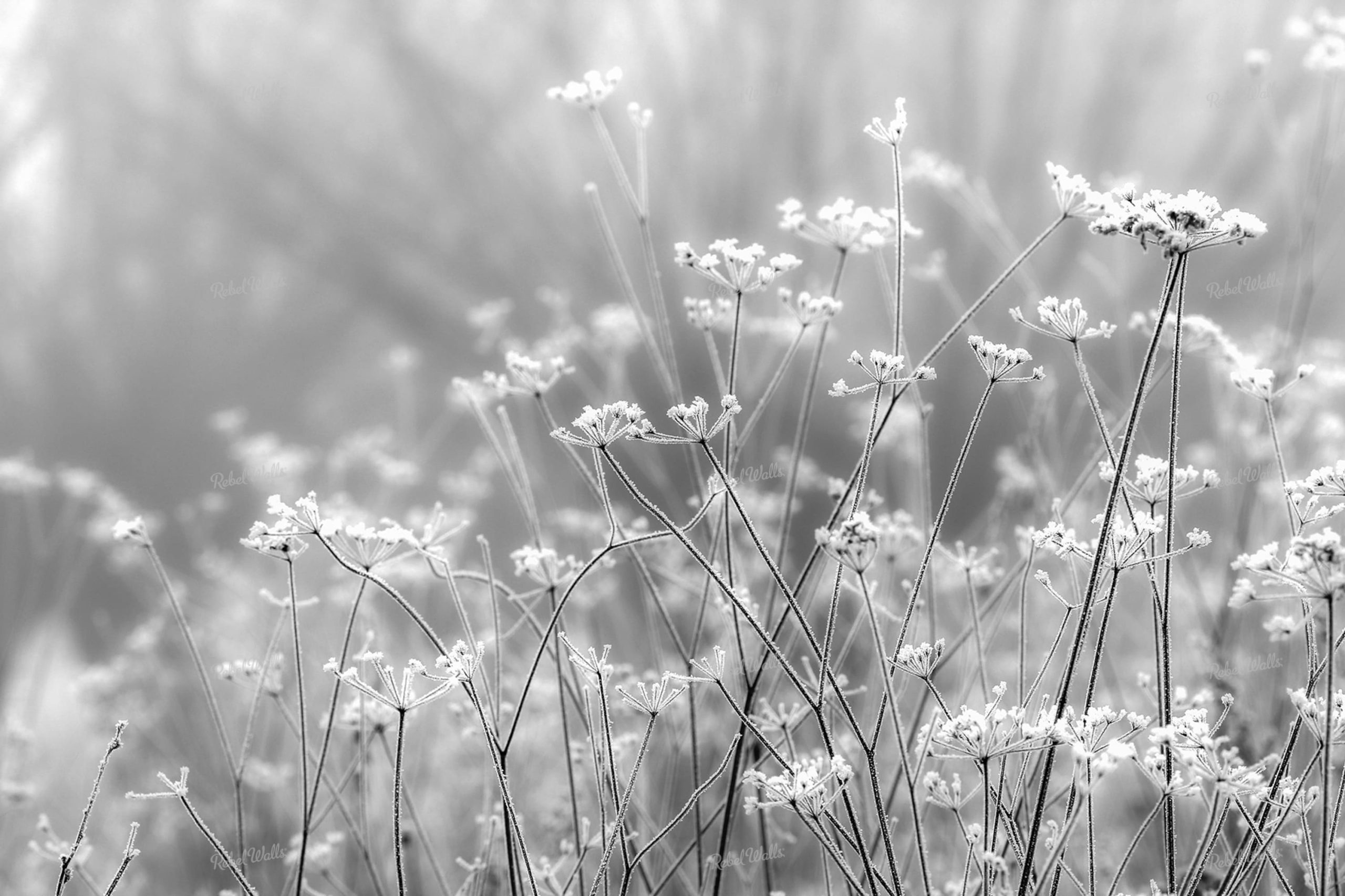 Frosty Straw este o fotografie alb-negru a unei zile cețoase cu flori.