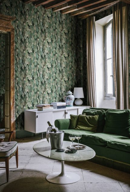 Verdeață densă cu pere coapte, prune și piersici. Violet, roșu și roz. În această variantă de culori, Lilac, Garden of Lust iese cu adevărat în evidență și are un efect minunat, aproape ciudat. O piesă cu o declarație certă care învăluie o cameră.