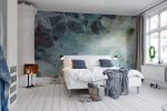 Crini albi, imperiali, înfloresc pe fototapetul nostru Garden of Dreams, într-o splendidă grădină, pe timp de noapte, pictată parcă în acuarelă. Motivul floral delicat, în nuanțe de albastru cerneală, oferă o atingere romantică.