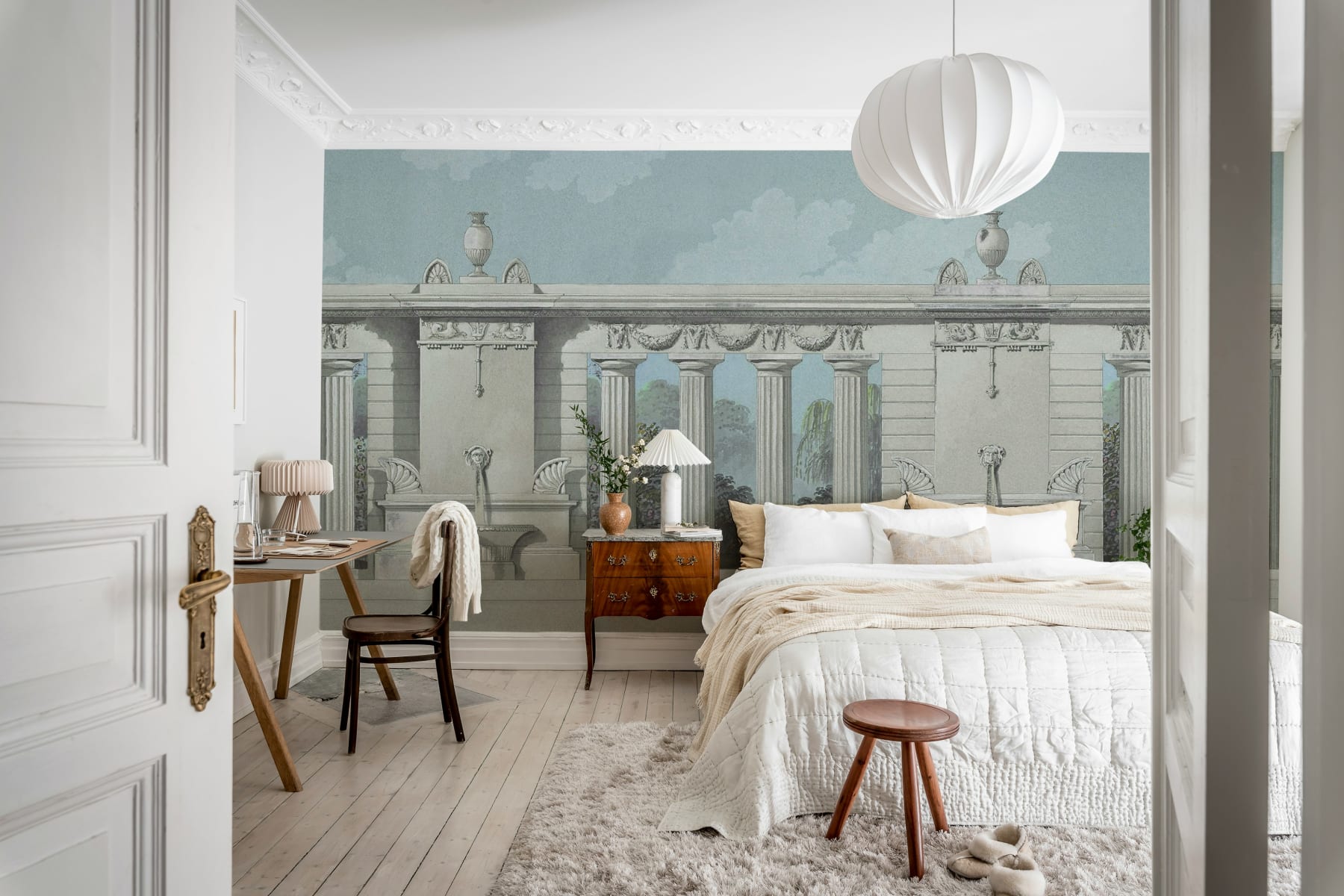 Fă un pas înapoi în timp cu tapetul elegant Garden Palace, Vintage. Acest design întruchipează măreția unei epoci apuse, capturând esența unei grădini clasice, cu elementele sale arhitecturale rafinate și atracția sa atemporală. Nuanțele vintage moi evocă un sentiment de nostalgie, creând un fundal sofisticat perfect pentru un living, hol sau orice spațiu unde farmecul istoriei este apreciat. Împodobește-ți pereții cu această operă de artă și lasă măreția lumii vechi să inspire o grație nobilă în locuința ta modernă.