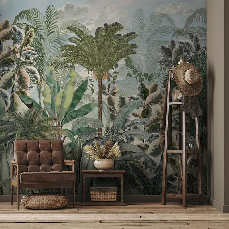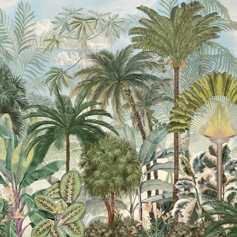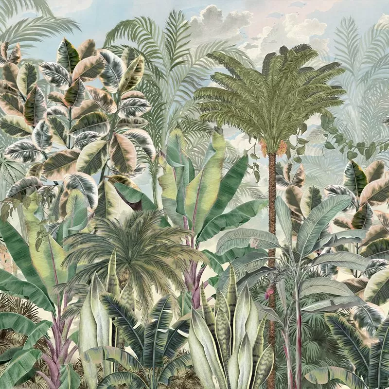 Modelul de tapet Gardenaria captează esența colecției Más A Tierra: sălbăticie, exotism, verde proaspăt și viu – frumusețe nemărginită. Pe un fundal senin, cu nori pufoși care creează textură și realism local, designerii talentați VLAdiLA au dispus o sumedenie de plante exotice, spectaculoase prin colorit, formă și mărime. Modelul de tapet Gardenaria te transpune în inima unei jungle luxuriante, unde frunze captivante invită la meditație și introspecție. Precum o vitrină en vogue, plantele așteaptă să fie descoperite și admirate. Marantha, palmieri, Ficus Tineke, Sansevieria și bananieri, fiecare așterne pe perete prospețimea și suplețea unei naturi încă neatinse de civilizație. Nuanțele de verde, frunzele variegate, luminile și umbra, totul oferă autenticitate tapetului, transformând orice încăpere într-o utopie vizuală.
