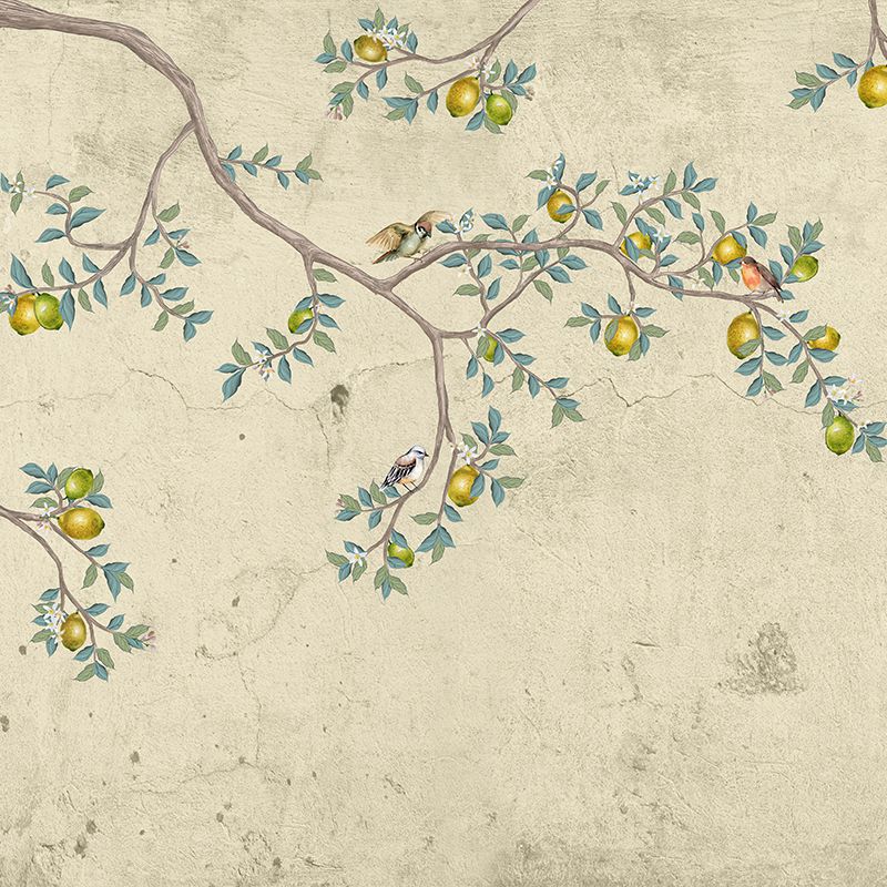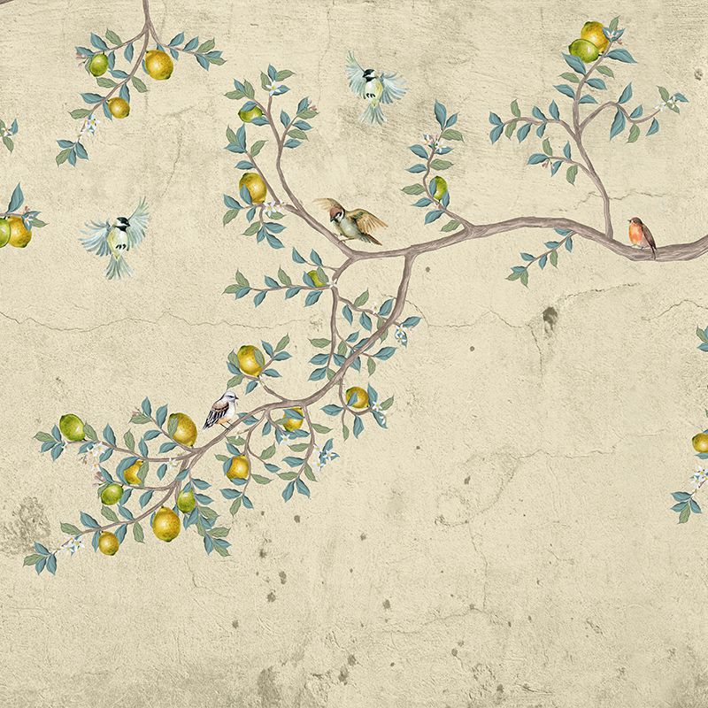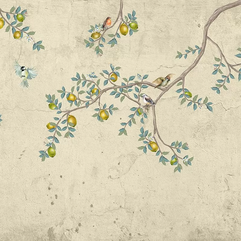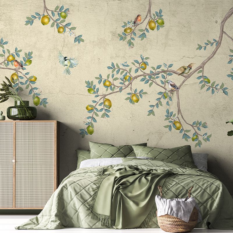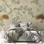 Adaugă o notă de eleganță discretă cu acest fototapet crem. Design delicat cu ramuri, frunze și păsări, perfect pentru un interior cald și primitor. Creează un ambient relaxant și sofisticat în orice cameră.