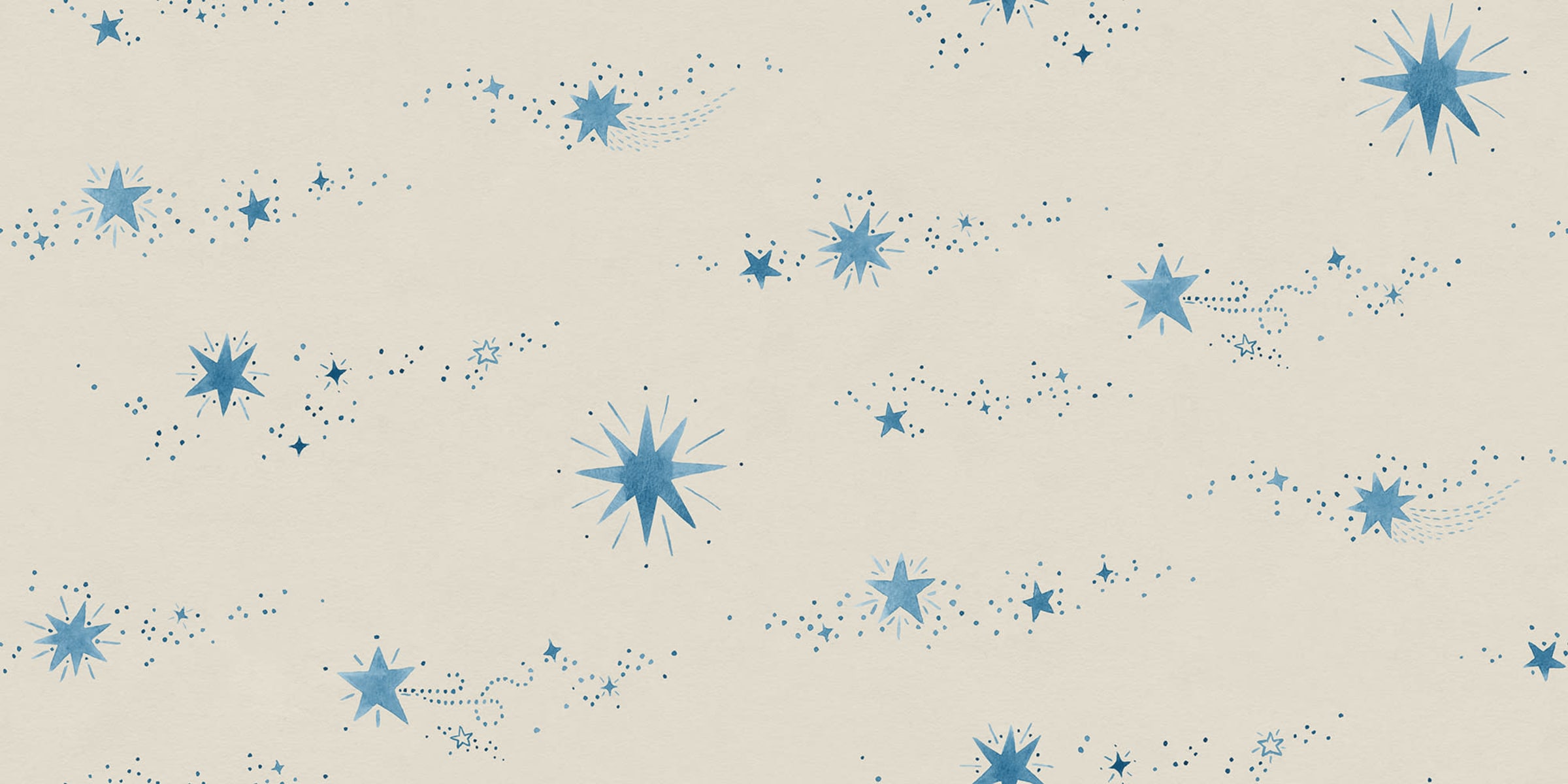 Stelele frumoase pictate manual dansează pe hârtie ca stelele pe cer. Creat împreună cu Johanna Bradford ca tapet de tavan, funcționează de asemenea minunat și pe perete. Schema de culori Blue are stele strălucitoare în albastru deschis pe un fundal bej.