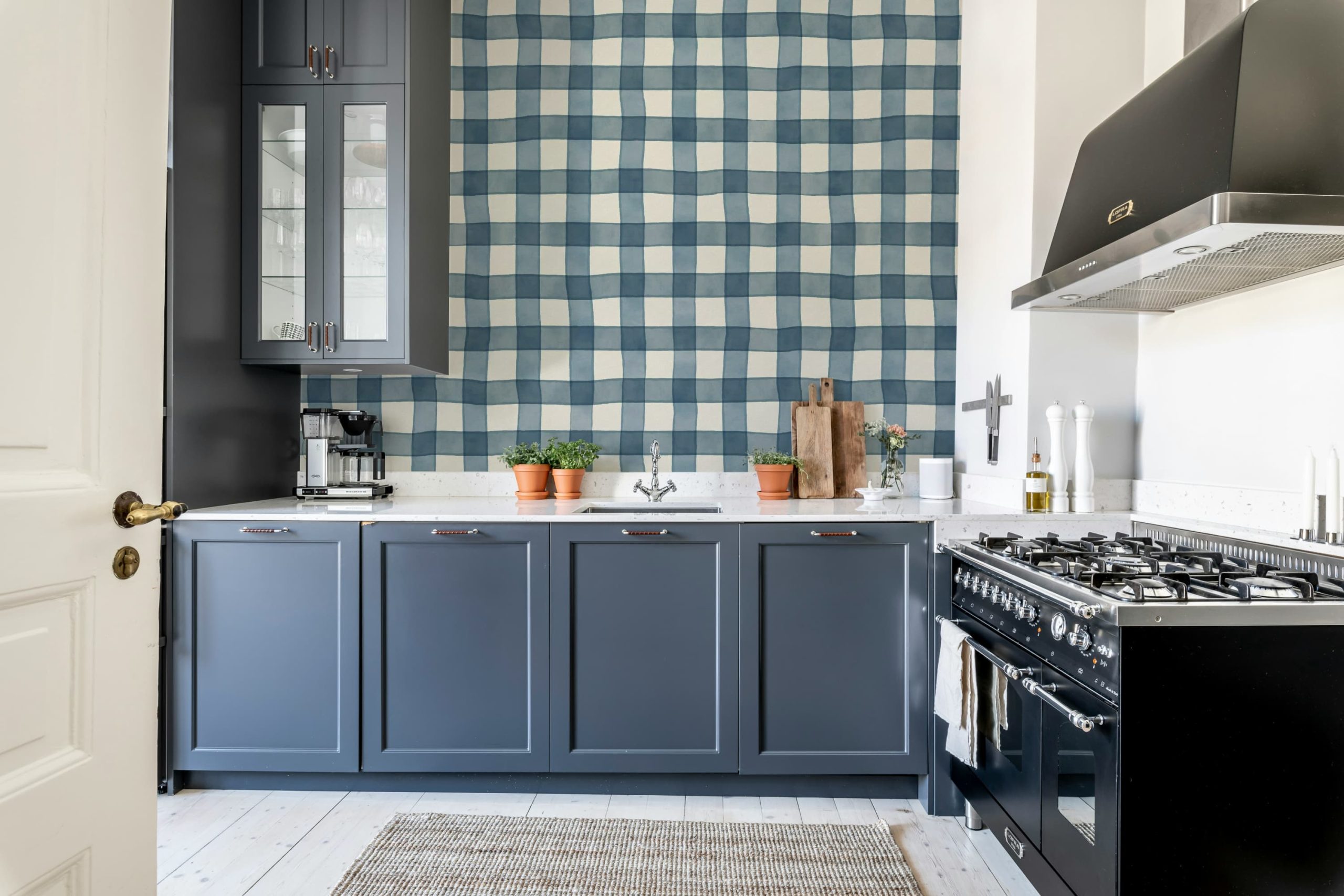 Home Tapet și Fototapet Gingham, Blue, Rebel Walls