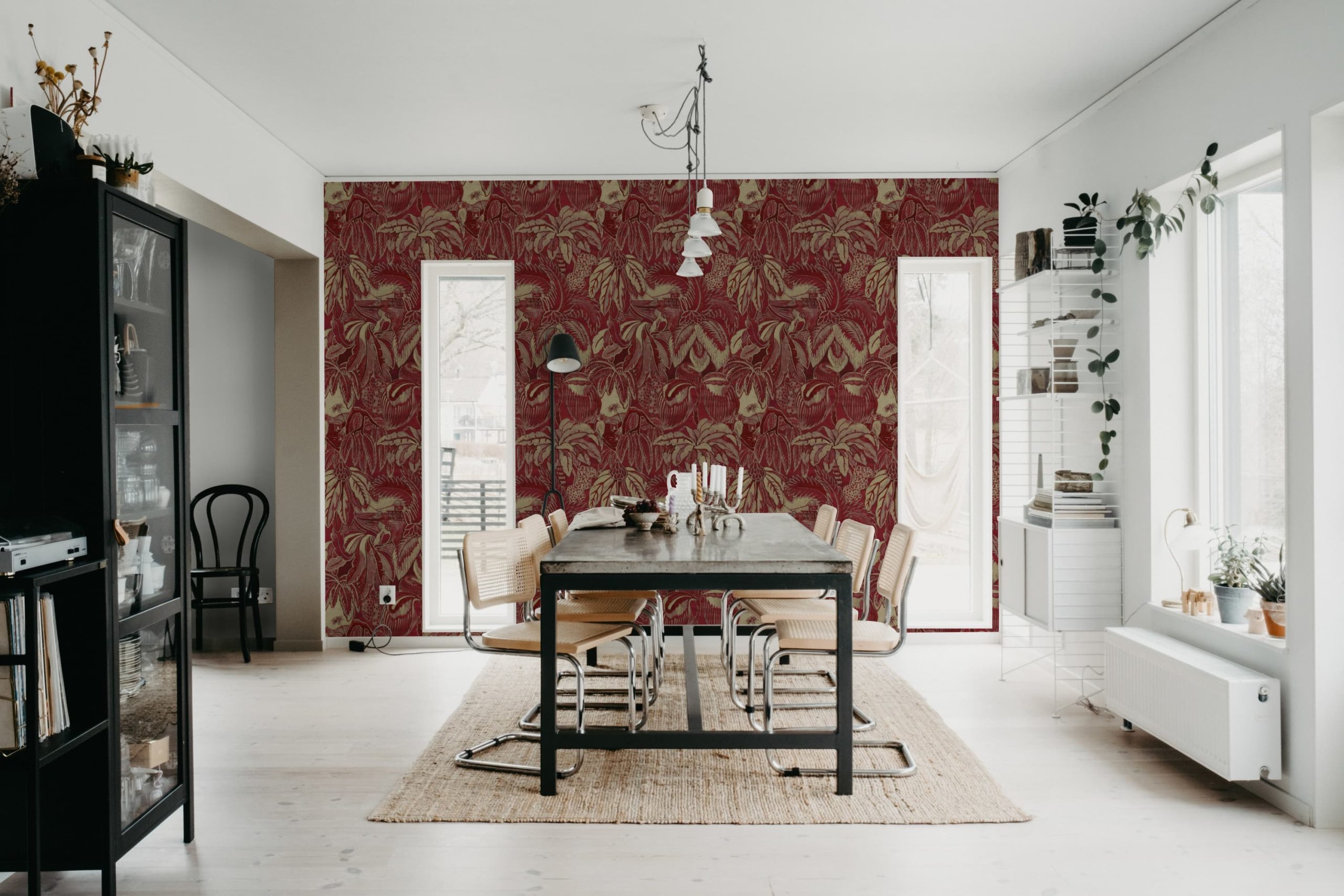 Adaugă un strop de eleganță cu acest tapet roșu cu detalii aurii. Ideal pentru un living sofisticat sau un dormitor plin de farmec. Creează un efect vizual uimitor și transformă orice cameră într-un spațiu deosebit.