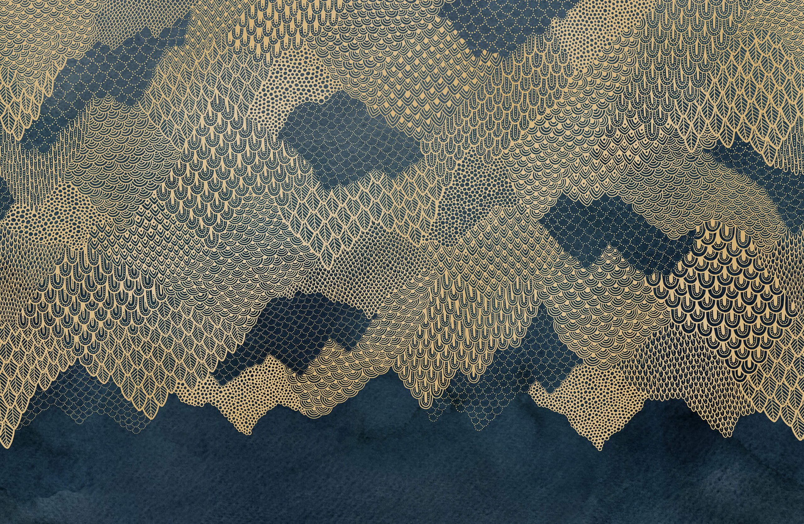 Acest model strălucitor este pictat manual de către designerii noștri. Un mural grandios care devine și mai opulent când este aplicat pe toți cei patru pereți. Designul auriu extrem de detaliat conferă un aspect exclusivist spațiului tău. Varianta Dark Blue impresionează prin nuanțele adânci de albastru închis și auriu.