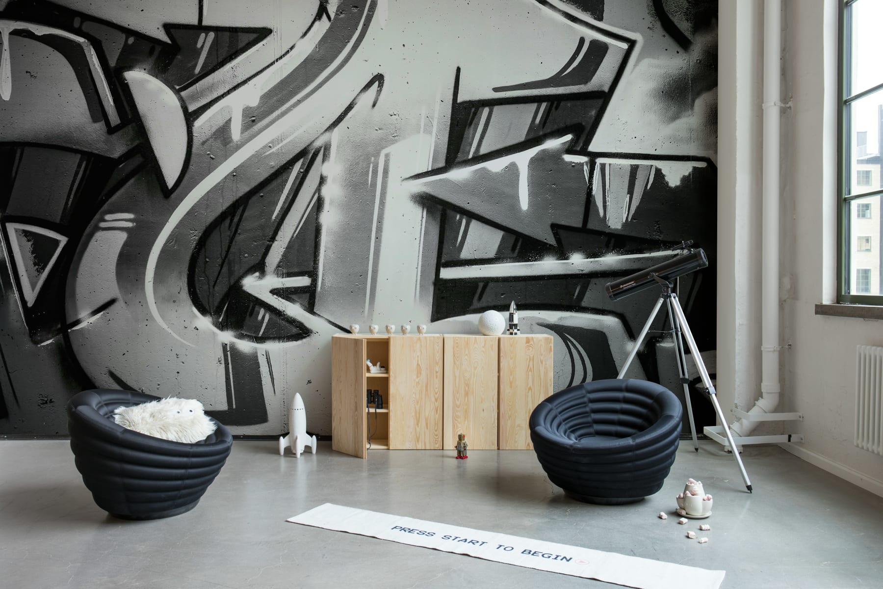 Home Tapet și Fototapet Graffiti Wall, Black & White, Rebel Walls