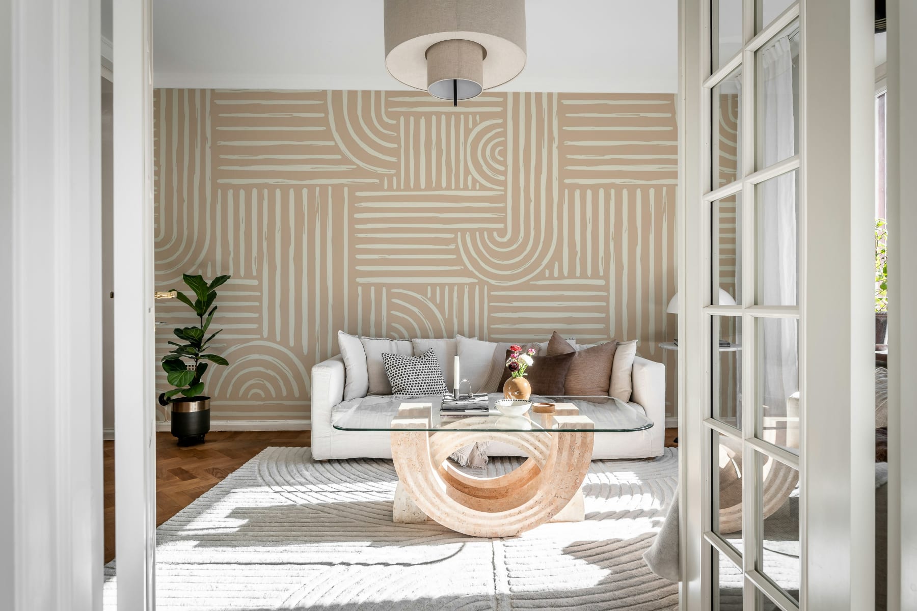Tapetul Graphic Vaults, Beige prezintă un joc sofisticat de arcuri curbate și desene liniare, prezentate într-o paletă liniștitoare de bej. Geometria modernă a modelului adaugă o textură dinamică, dar subtilă pereților dvs., făcându-l ideal atât pentru pereți, cât și pentru camere întregi. Tonurile neutre îi permit să se îmbine fără efort cu diferite stiluri de decor, în timp ce formele îndrăznețe aduc o notă de fler artistic. Perfect pentru camere de zi, dormitoare sau holuri, Graphic Vaults, Beige oferă un amestec armonios de căldură și design modern, adăugând profunzime și caracter oricărui spațiu.