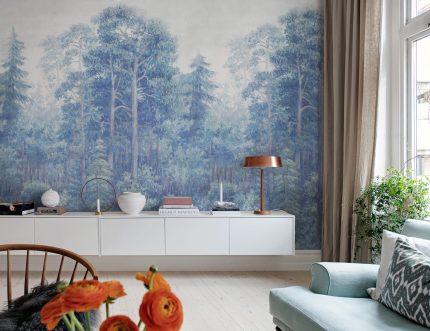 Un motiv împădurit, pictat manual cu grijă. Culorile și detaliile lucrează împreună și formează o profunzime și o senzație fin reglate pentru design. Sunt multe de descoperit de aproape! Acest design vibrant, dar delicat, are un efect liniștitor asupra unei încăperi. Perfect pentru dormitoare.