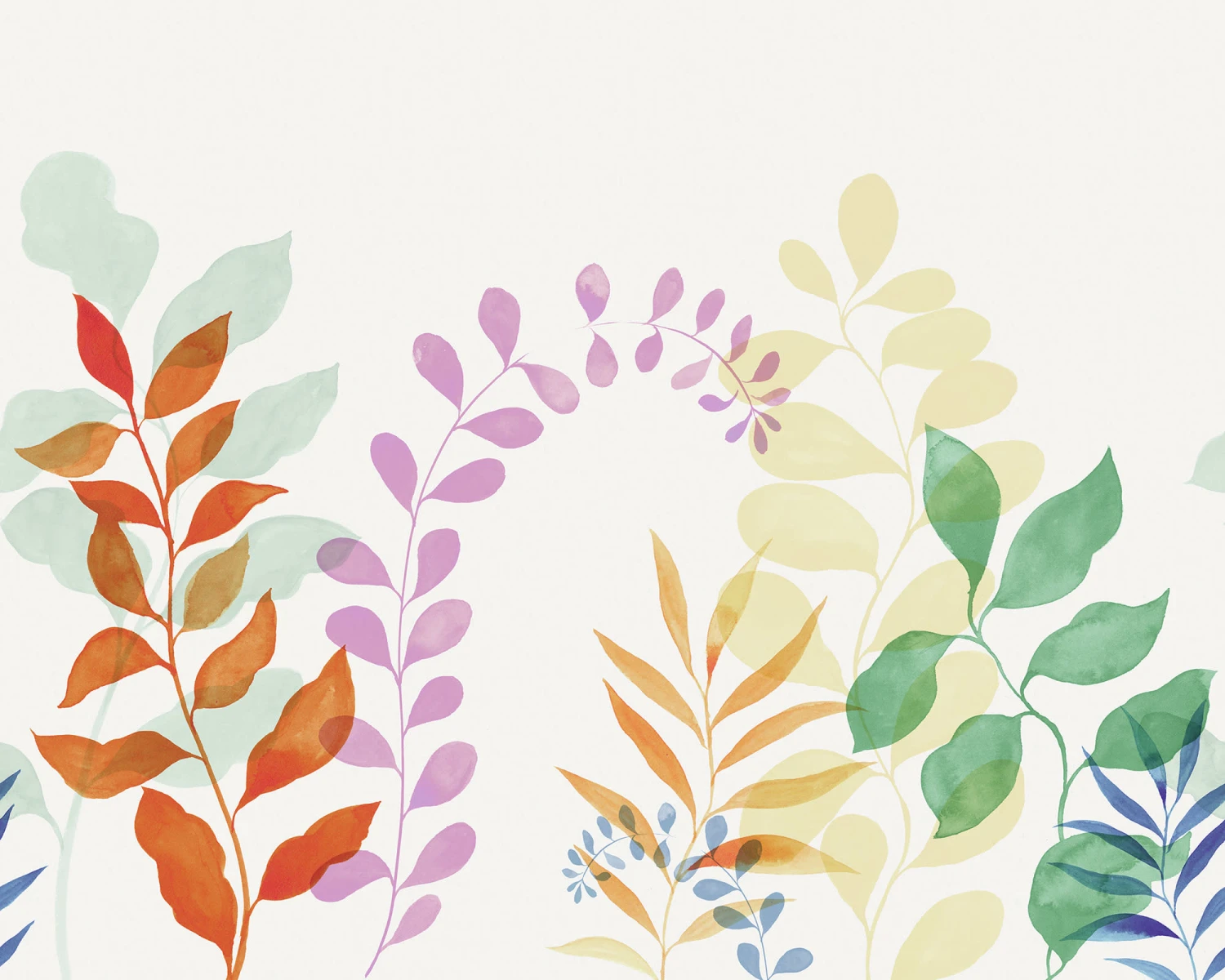 Această ilustrație grațioasă a siluetelor frunzelor într-o paletă fascinantă în nuanțe de curcubeu este concepută pentru a aduce bucurie, mândrie și o notă de eleganță naturală spațiului tău.