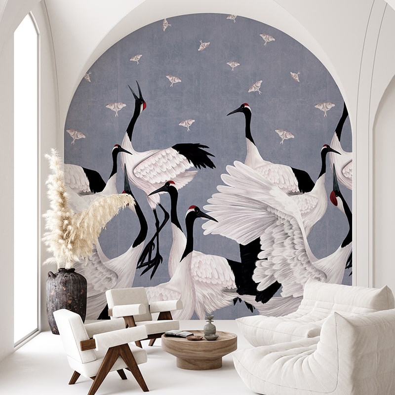 Grus Japonesis in Blue este un tapet cu design modern, inspirat din cultura japoneză. Acest tapet prezintă o imagine elegantă și delicată a unor macarale japoneze albe pe fundal albastru. Culoarea albastră a tapetului aduce o notă de liniște și relaxare, în timp ce imaginea cu macarale simbolizează norocul și longevitatea. Grus Japonesis in Blue este o alegere perfectă pentru a crea o atmosferă elegantă și plină de farmec în casa ta.