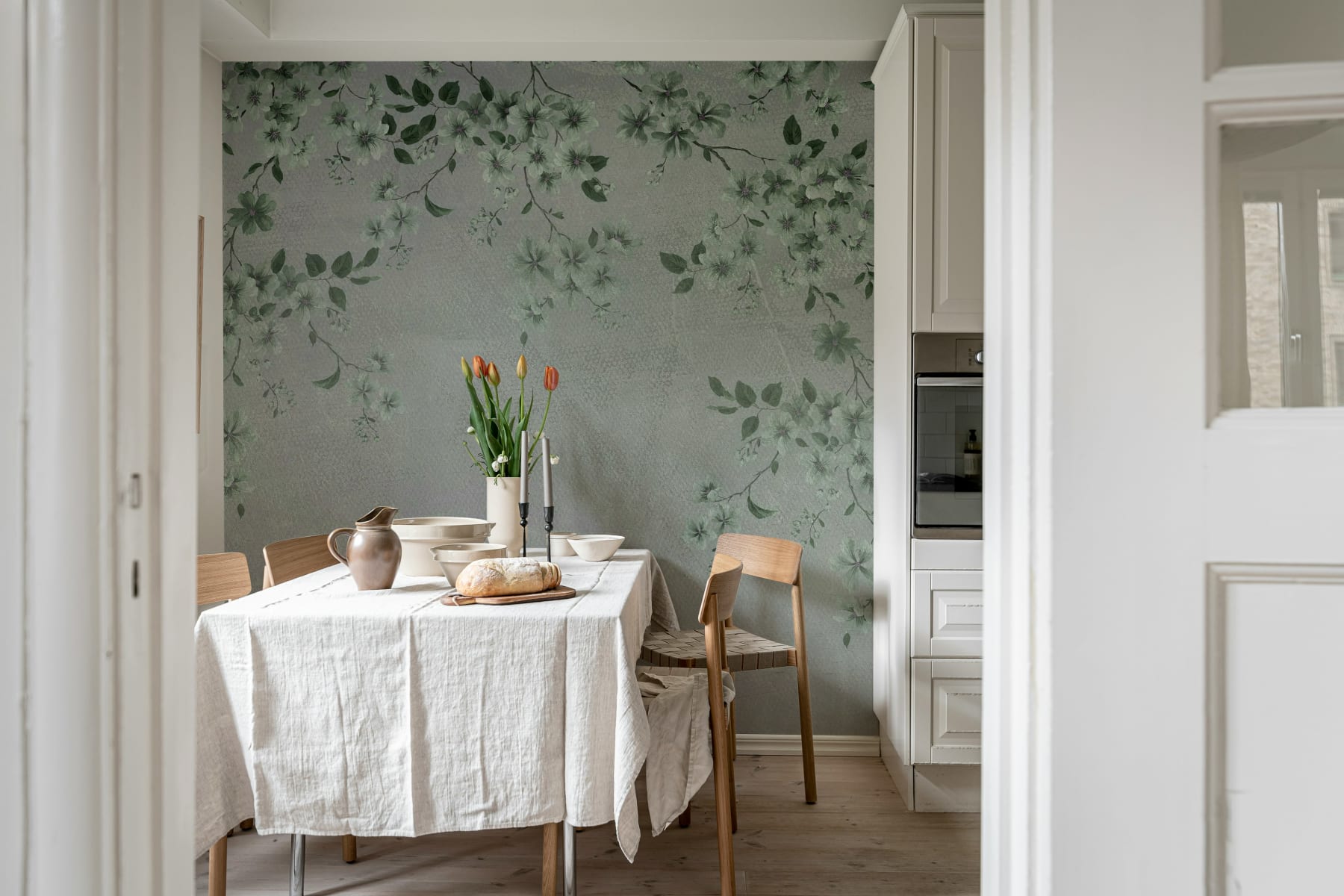 „Hanging Flora, Gray” dezvăluie frumusețea liniștită a florilor și ramurilor suspendate, capturată într-o ilustrație elegantă pe un fundal gri moale. Acest tapet aduce liniștea unui grădini înflorite în interior, creând o atmosferă pașnică și rafinată în orice cameră. Perfect pentru cei care caută o notă de calm și sofisticare naturală în spațiul lor de locuit.