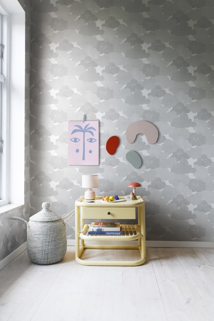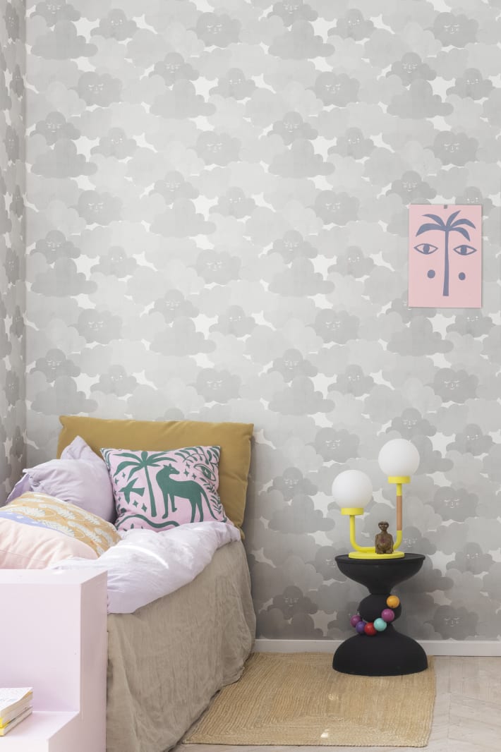 Acoperiți-vă pereții cu nori fericiți, grafit, pufoși care zâmbesc ușor în nuanțe minunate de gri. Chiar și micii rebeli pot adormi ușor în compania acestor nori prietenoși.