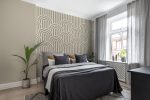 Pereți de vanilie pentru un interior jucăuș. Bejul este o culoare sigură pentru interioare calme și dungile îndrăznețe aduc toată distracția și bucuria.