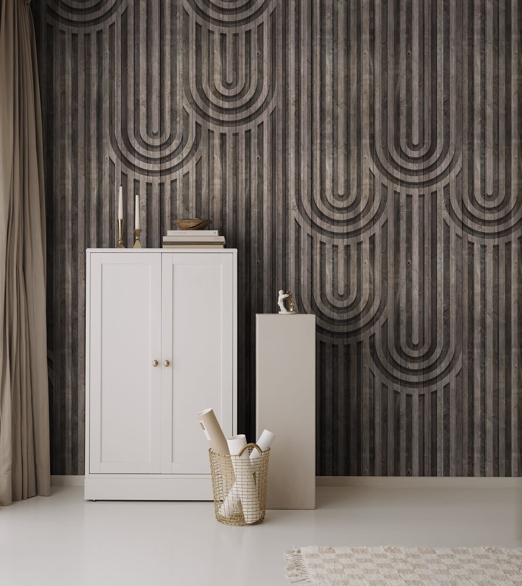 Cu acest tapet vei adăuga un plus de stil oricărei încăperi. Modelul cu aspect lemnos și elemente geometrice este ideal pentru un decor modern și sofisticat.