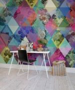 Îmbracă-ți peretele în trandafiri și bucură-te de ei în fiecare zi! Un mix de culori vii, flori și modele geometrice – romburi, pentru un aer modern și vesel!