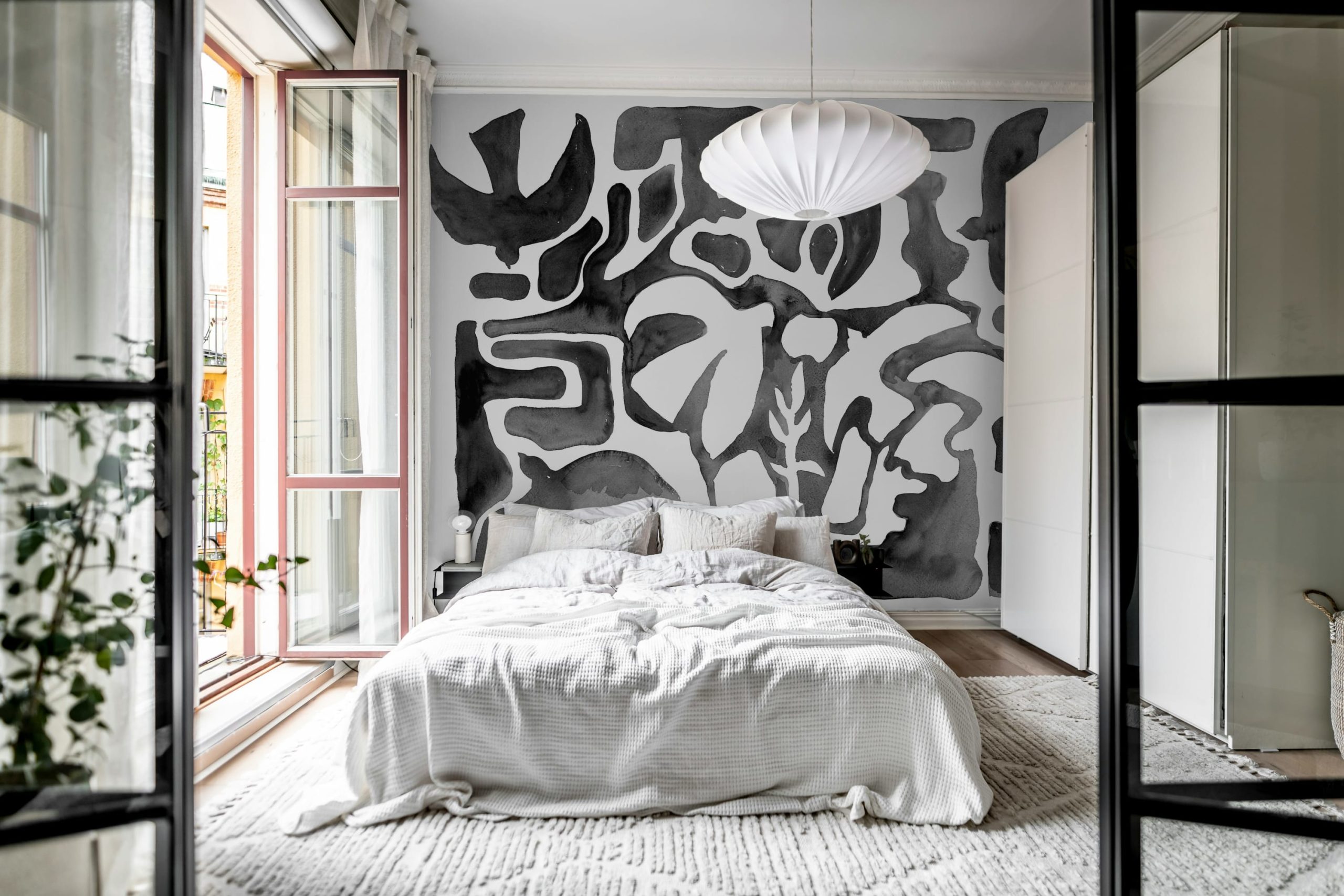 Scufundați-vă într-o lume a liniștii cu acest design îndrăzneț de acuarelă alb-negru. Formele sale mari, fluide și reprezentarea jucăușă a porumbeilor păcii și a ramurilor de măslin creează o abordare modernă a unei teme atemporale. Modelul unic al acestui tapet se aliniază natural cu un efect de spațiere moale, oferind un fundal perfect pentru un spațiu senin.