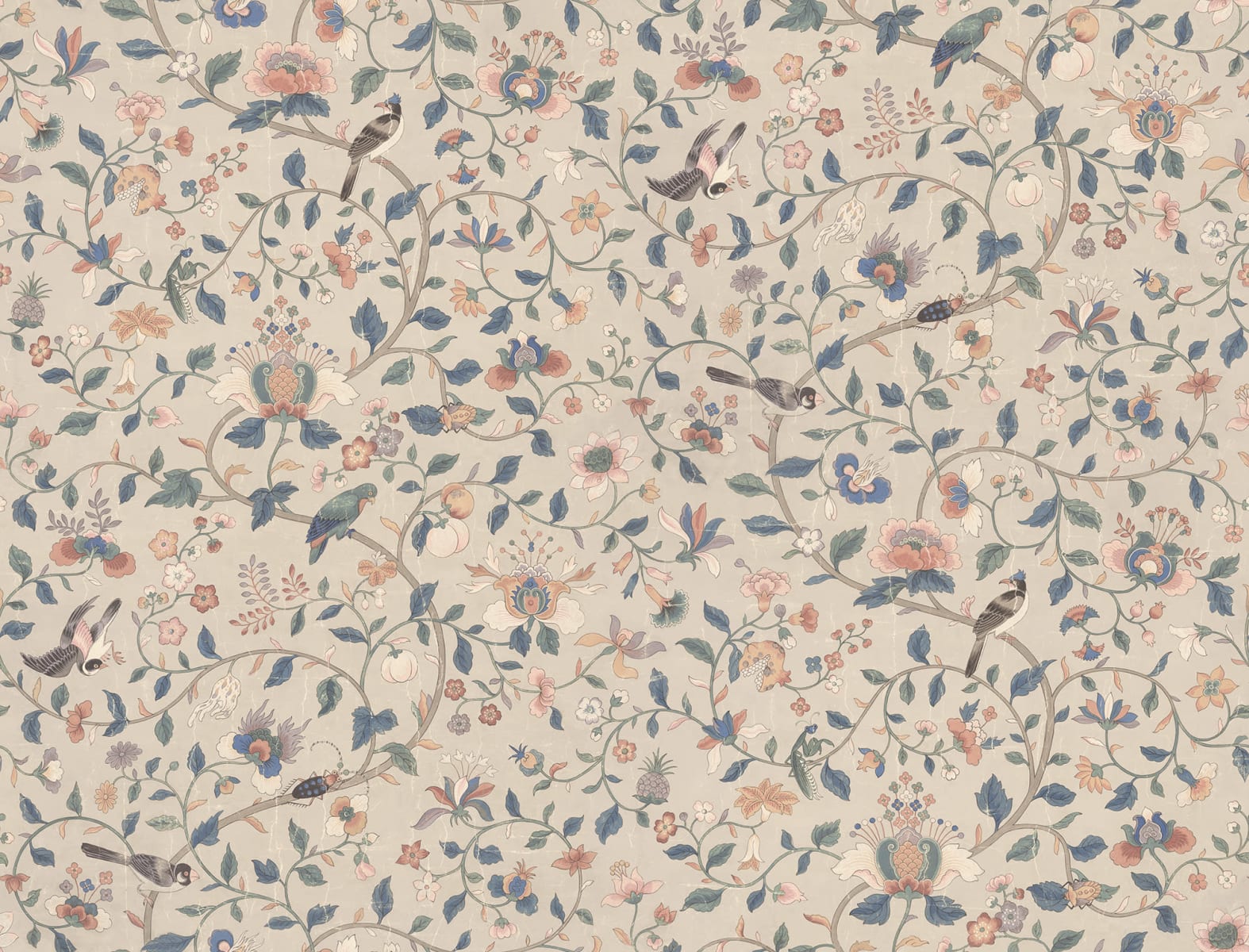 Un original vechi pictat manual, detaliat în mod excepțional, care, cu culorile sale multifațetate, se poate potrivi cu multe interioare diferite. Decorativ și unic, incărcat de istorie. Schema de culori Hedda, Sandstone, are pasteluri moi în nuanțe de roșu, roz, verde și albastru pe un fundal bej de argilă.