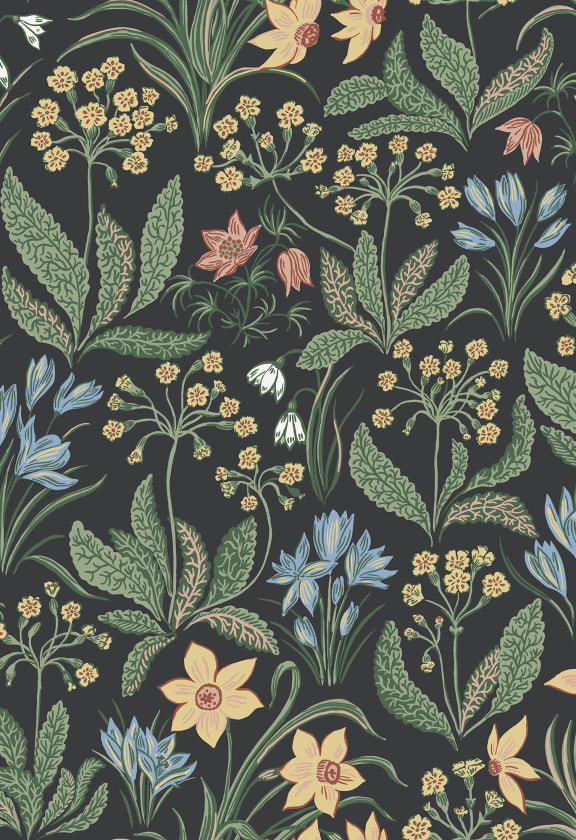 Ella black este un tapet cu un model grafic de bază, ornamentat cu decorații frumoase și jucăușe. Un model nemuritor,