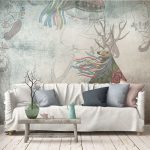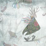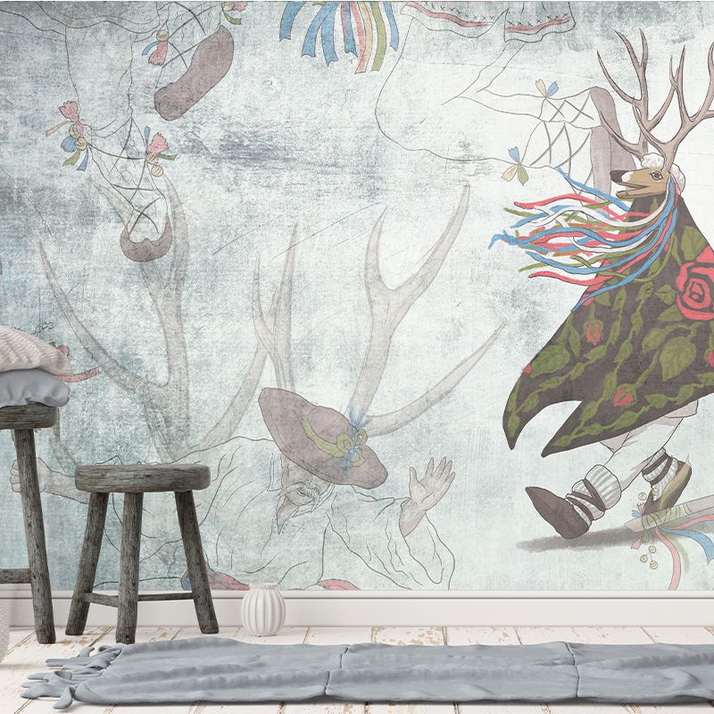 Iarna, VLAdiLA este un tapet cu un design unic și original, care aduce o notă de magie și mister în orice încăpere. Imaginea prezintă un cerb cu coarne impunătoare și o figură îmbrăcată în haine tradiționale. Tonurile pastelate și detaliile fine creează o atmosferă caldă și primitoare, perfectă pentru a crea o oază de relaxare în casa ta.