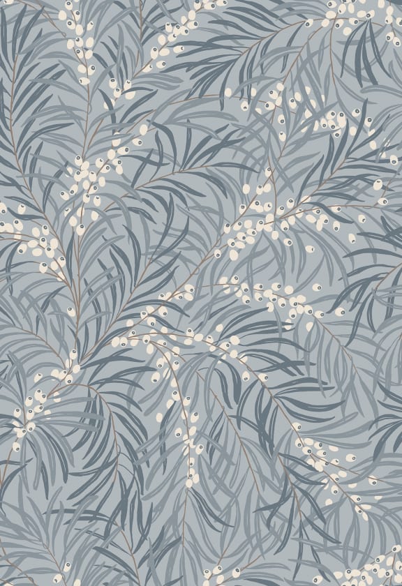 Un imprimeu botanic cu catină bogată în fructe pline de vitamine care se imprastie pe perete. Frunzele formează mici pene frumoase ca frunzele de palmier și oferă camerei o senzație exotică într-un caracter nordic.