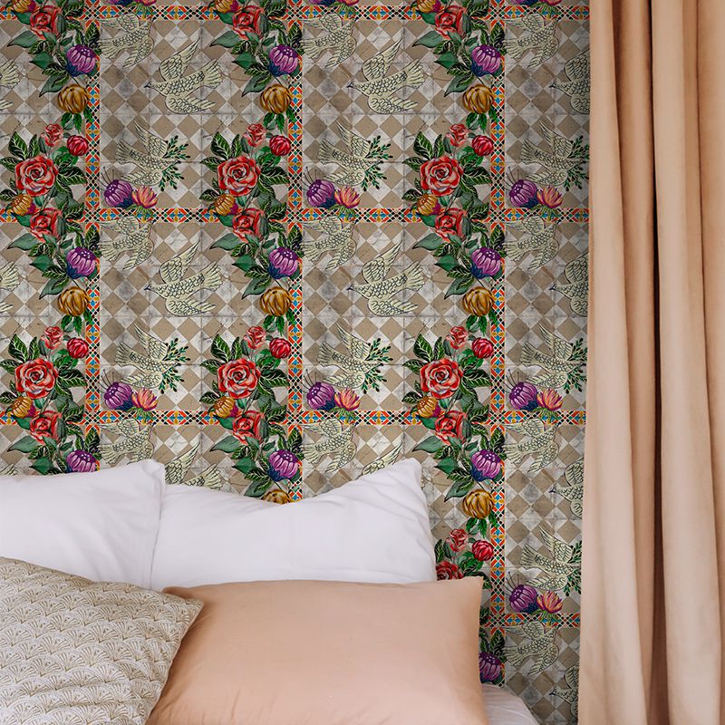 Înfățișând un model delicat cu flori roșii, frunze verzi și păsări albe pe un fundal gri, înfiripare (alb) este perfect pentru a adăuga un strop de eleganță și naturalețe oricărei camere. Cu o textură subtilă și o paletă de culori calde, acest design va crea o atmosferă relaxantă și primitoare. Se potrivește perfect pentru un living, dormitor sau o cameră de zi, adăugând o notă de stil și rafinament.