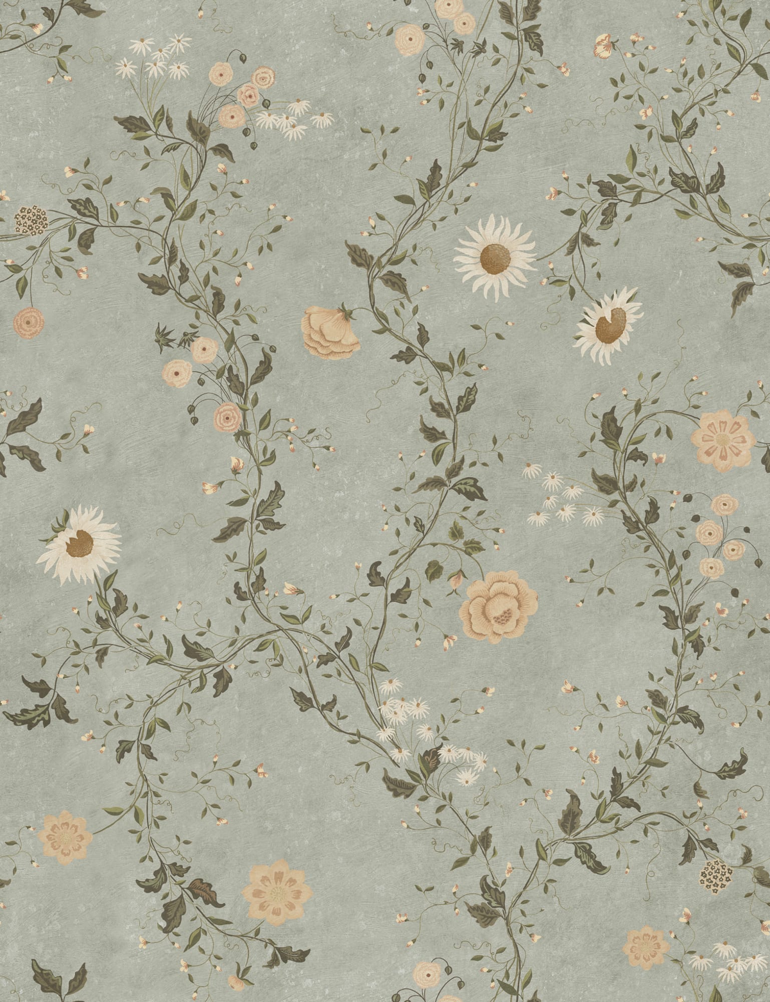 Aspect vintage romantic în care suprafața textilă netedă întâlnește splendoarea florii pasiunii. Design: Johanna Vestlin Informații generale:personalizat:da|Informații generale:mostră disponibilă:da|Tapet >