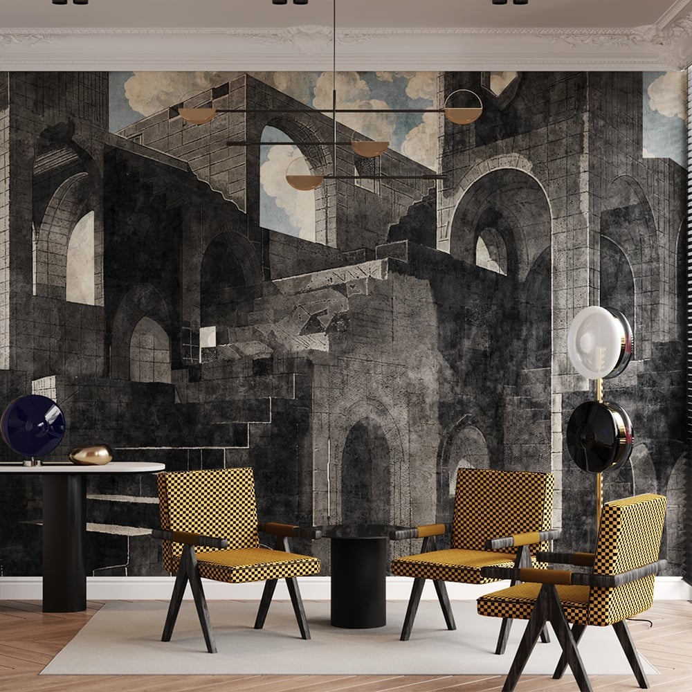 Adăugați o notă de eleganță clasică în casa dvs. cu acest tapet cu model de dale vintage. Designul delicat, cu