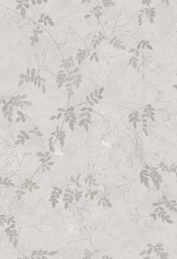 Marieberg este o operă de artă murală care arată ca un decor de porțelan frumos pictat manual. Frunzișul formează un