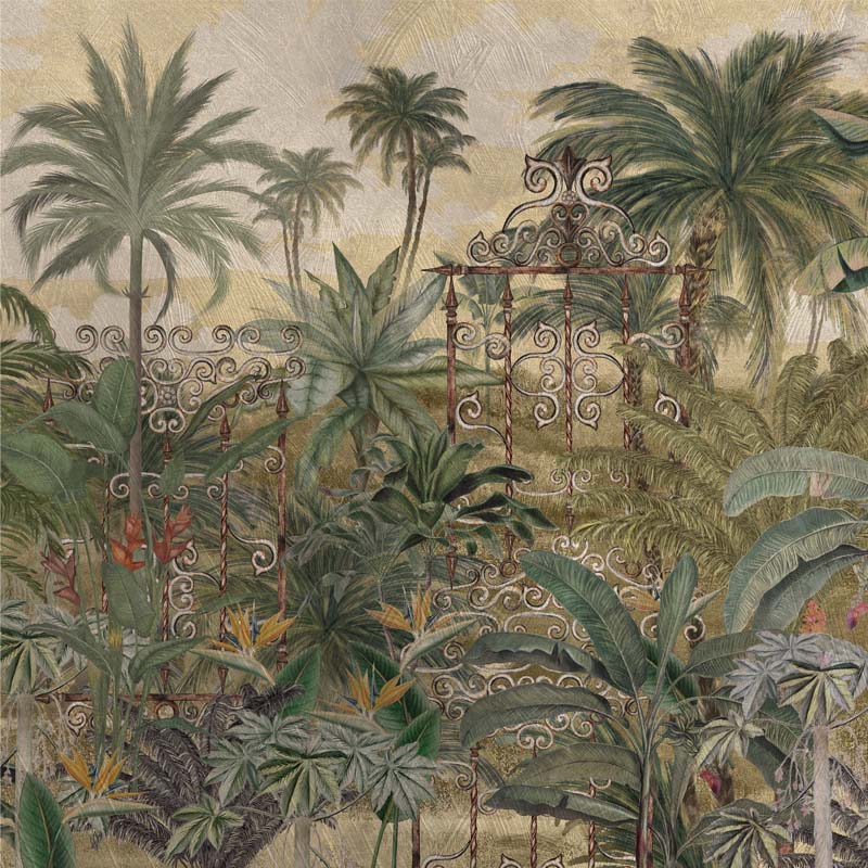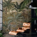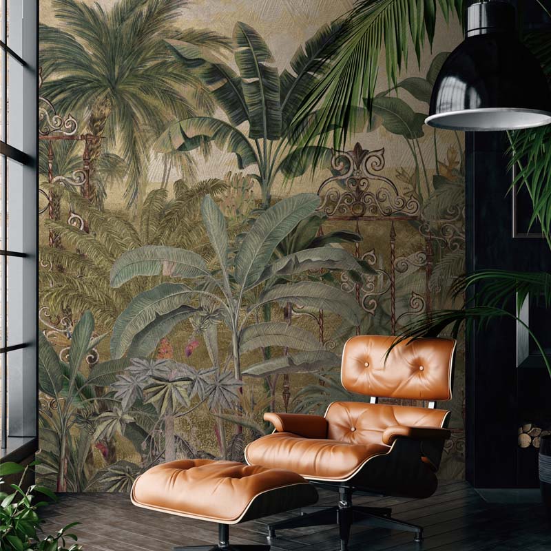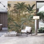 Adaugă o notă exotică și vibrantă spațiului tău cu acest tapet cu un model tropical. Designul prezintă macarale elegante, palmieri