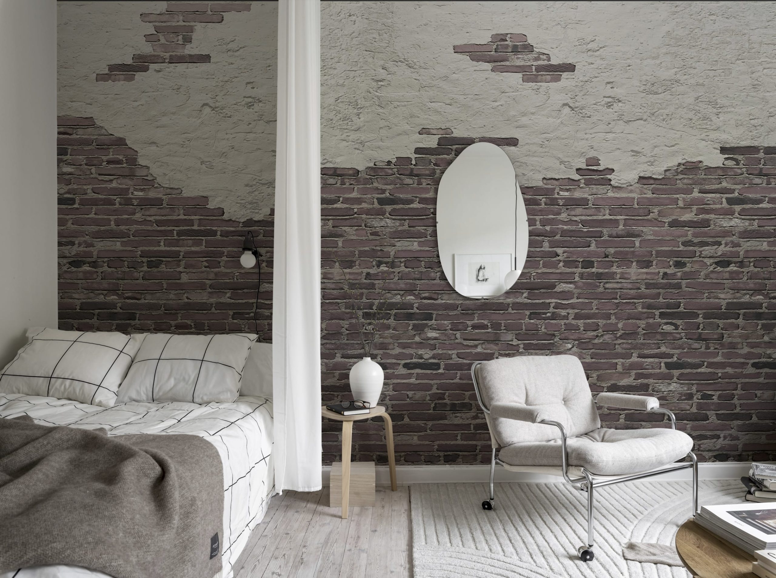 Tapetul Ivory Bricks, Red oferă o combinație artistică de urban și confort, perfect pentru a crea un spațiu cu interes vizual și apel tactil. Cu textura sa realistă de cărămidă sub un strat ușor de tencuială, acest tapet prezintă un design bogat stratificat care imită un perete artizanal.