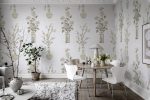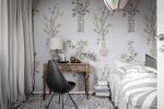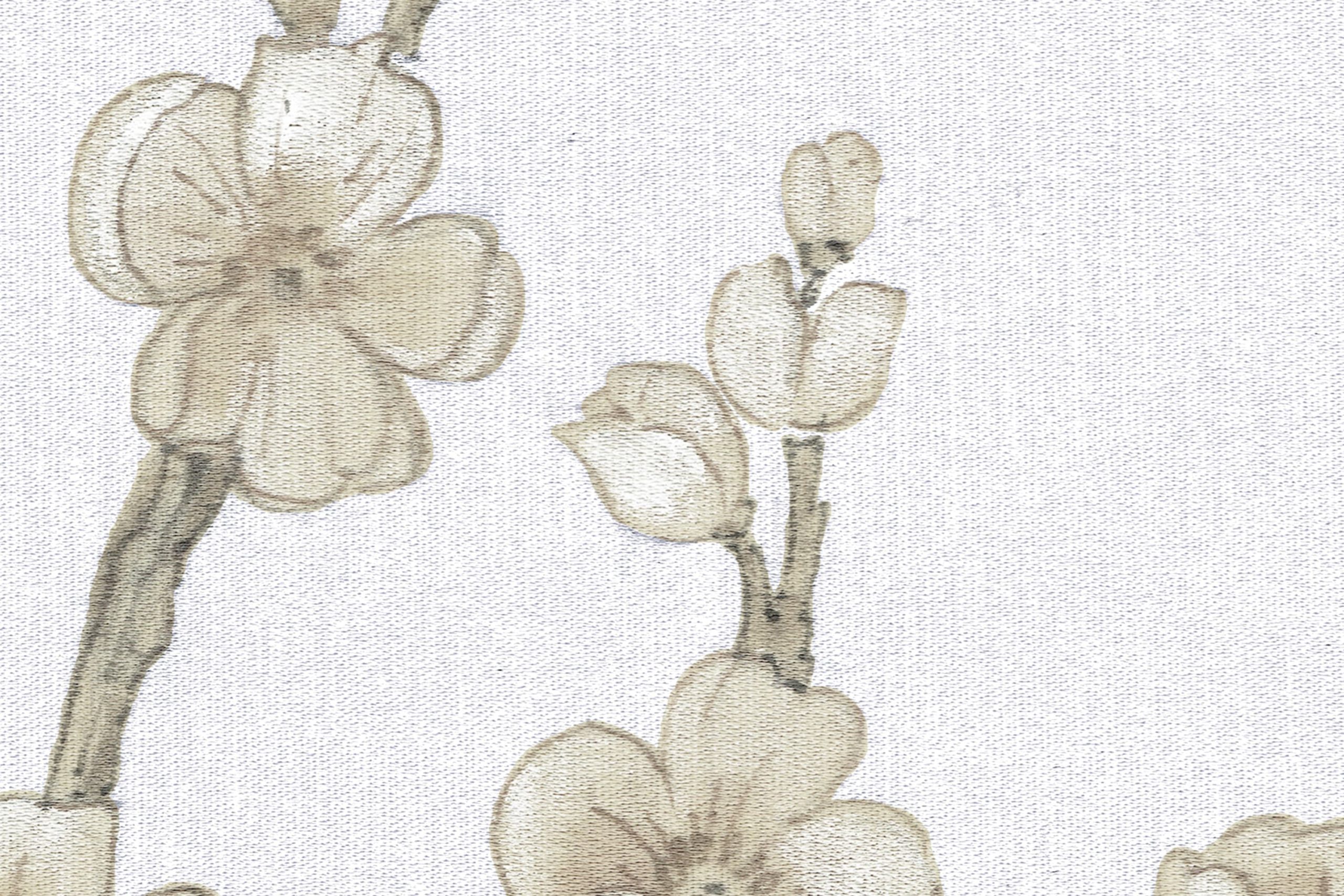 Vazele japoneze pictate manual cu flori de cireș și crizanteme formează împreună un design simetric deosebit. Vazele si florile sunt vopsite in nuante de maro si bej foarte deschis pe un fundal structurat de culoare gri sidefat. Un design foarte delicat, elegant, cu o notă asiatică plăcută. Acest tapet poate fi aplicat atât pe un perete, cât și pe toți patru.