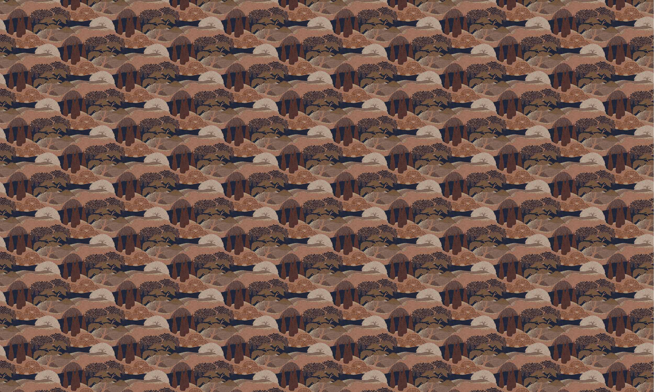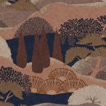 Jardín Japonés, Canela, din colecția Lur, este un design vegetal, în nuanțe de roz/mov. Plantări contemporane sub forma unor terase cu chiparoși pictați pointilist.