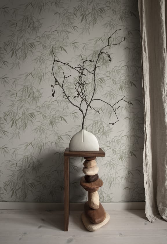 Impresia de a te afla într-o pădure cețoasă de bambus. Cromatica visătoare, cu o adâncime armonioasă, va conferi o senzație de calm oricărei încăperi.
