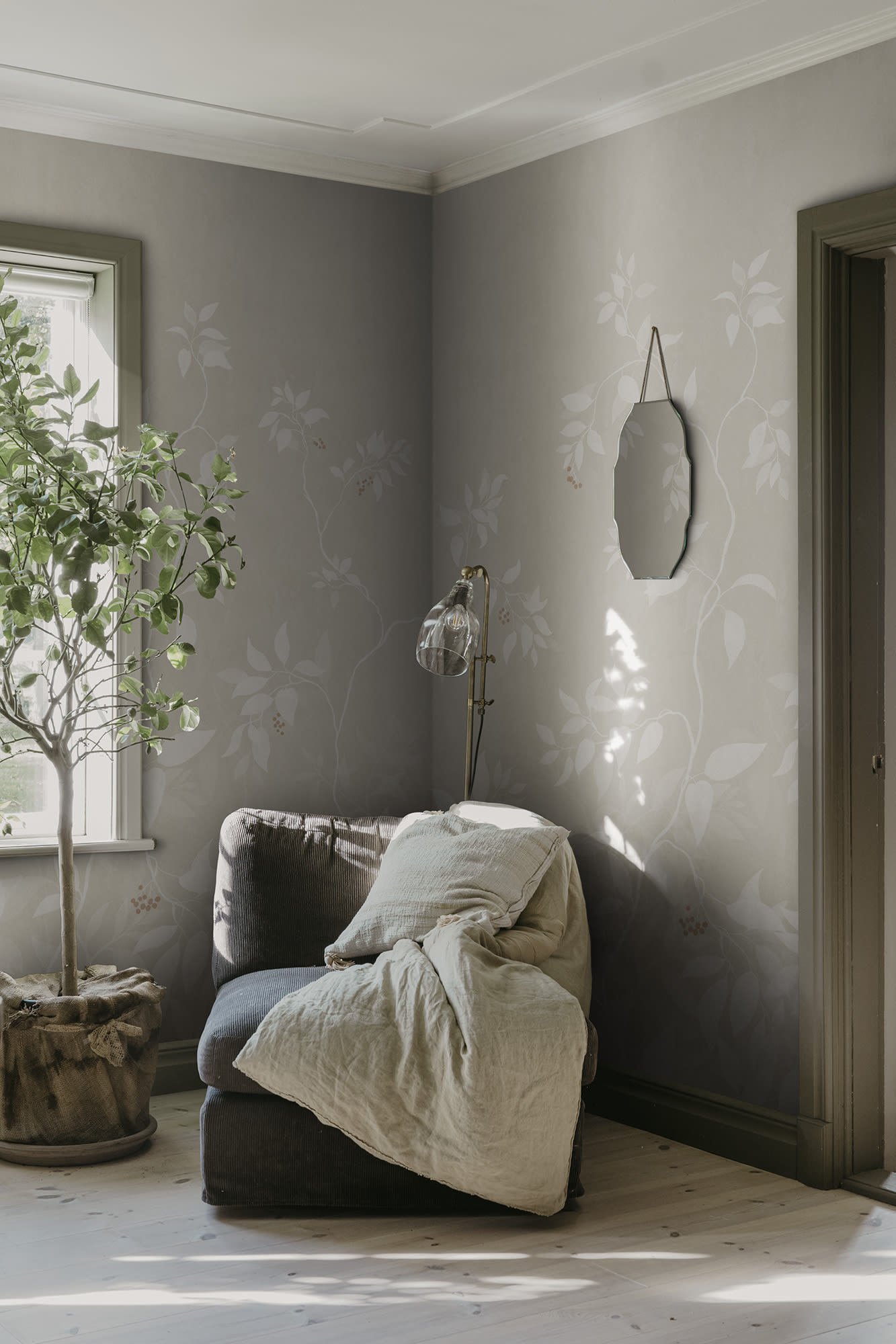 Marieberg este o operă de artă murală care arată ca un decor de porțelan frumos pictat manual. Frunzișul formează un